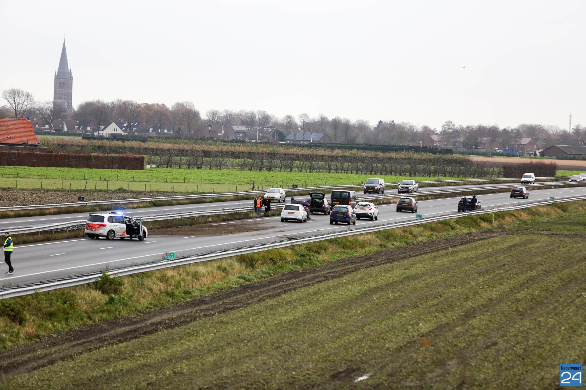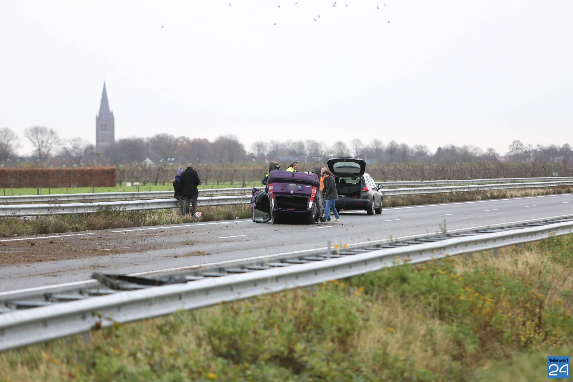 Zaterdagmorgen is een auto over de kop geslagen na een aanrijding op de A2 bij Nederweert. Een tweede auto kwam hard in de vangrail tot stilstand. Het ongeval gebeurde net voor afslag Nederweert, vanuit Weert-Noord richting Maastricht.