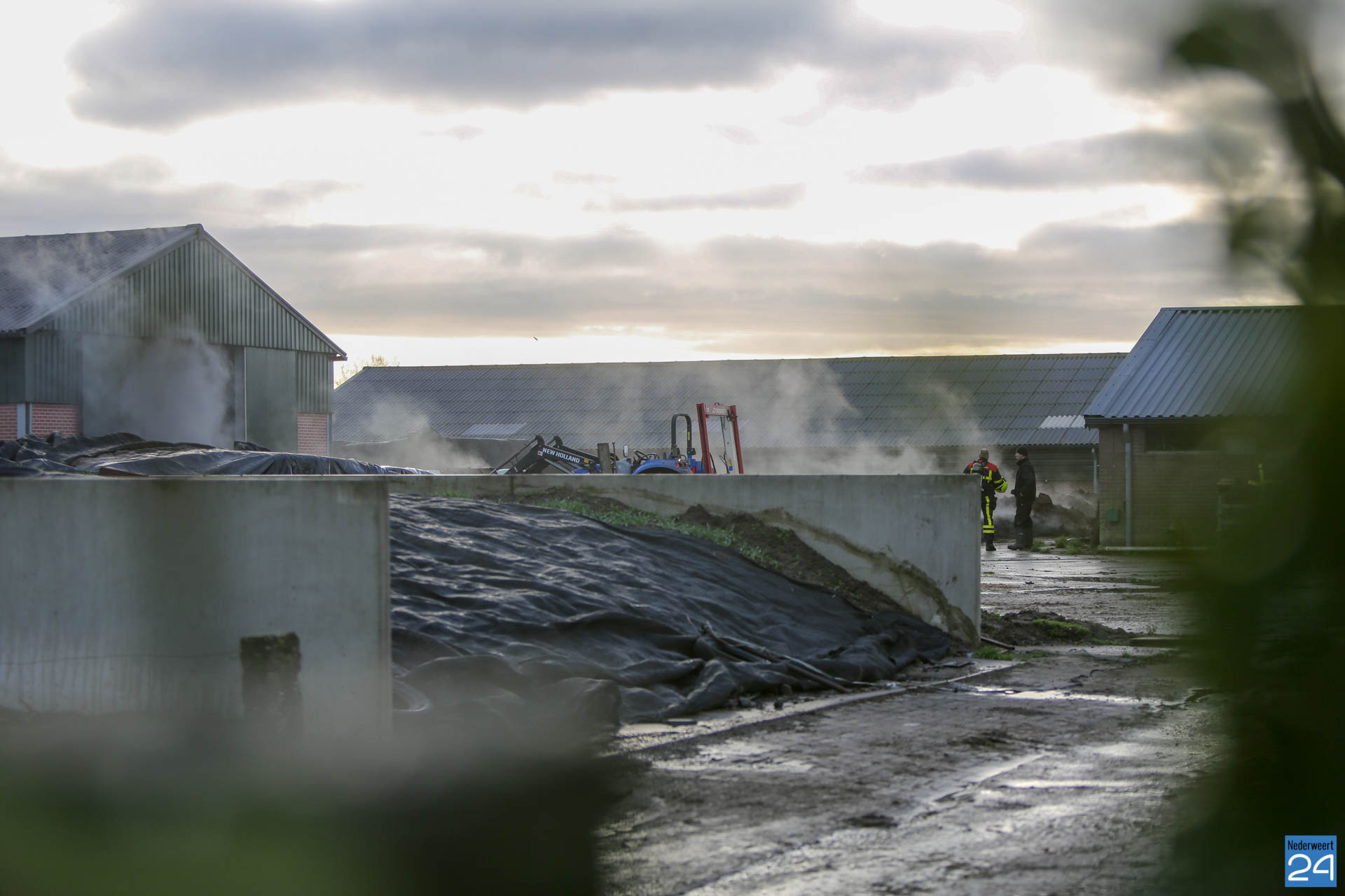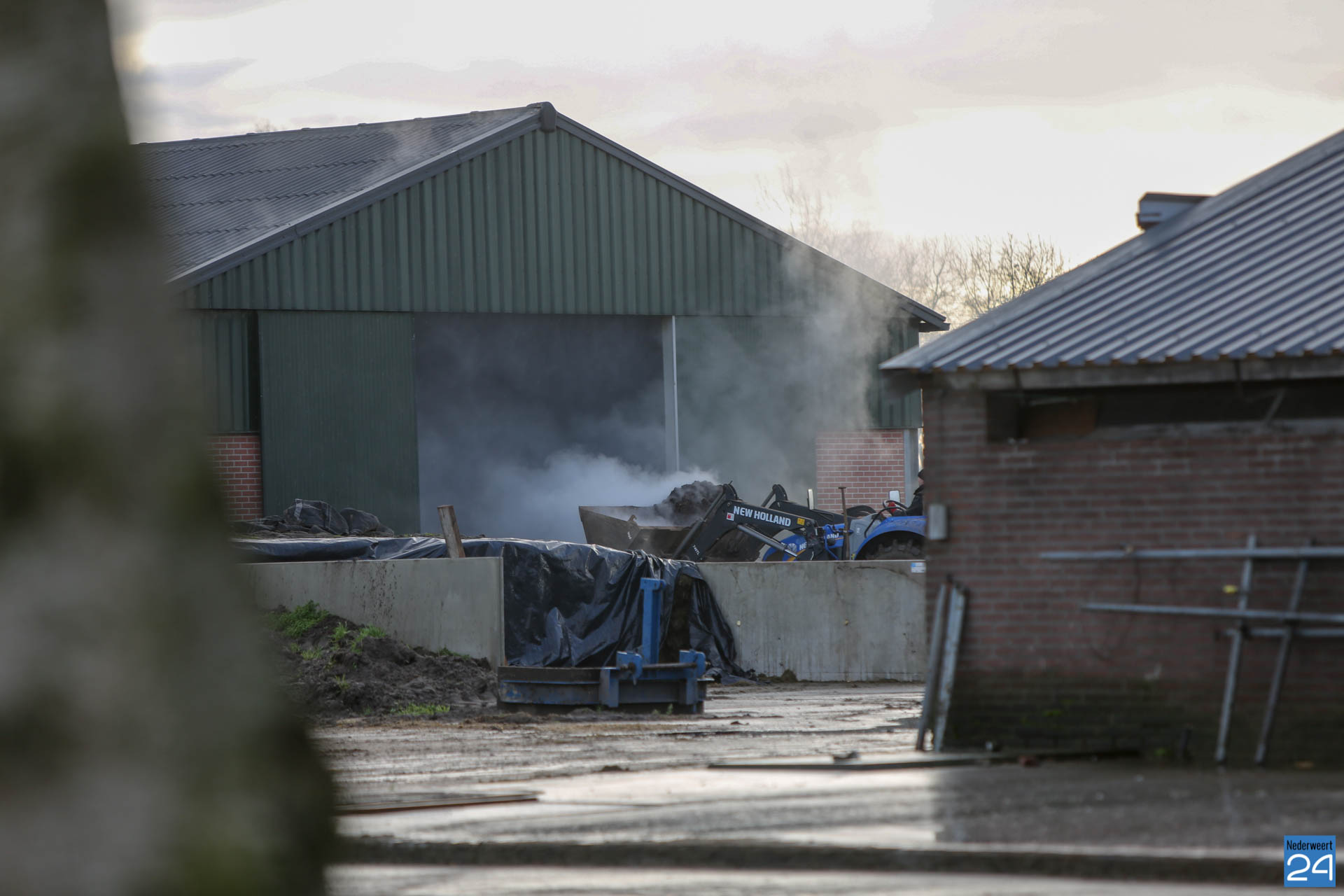 Met een shovel werd de mest uit de loods gereden. Het uit de loods halen van de mest zal nog gepaard gaan met de nodige rook- en stankoverlast.