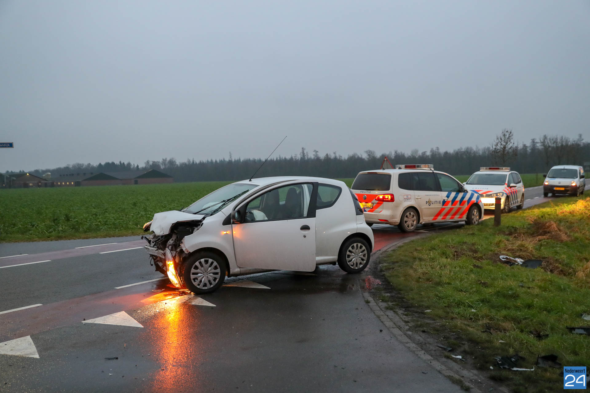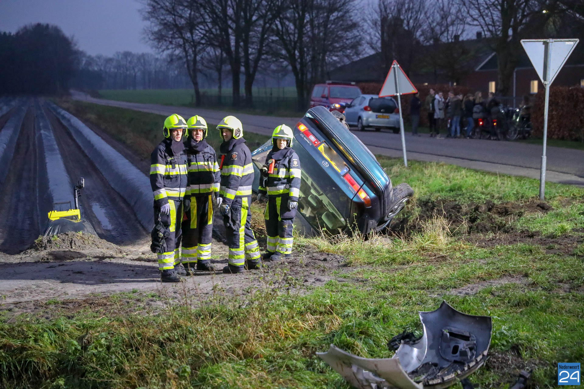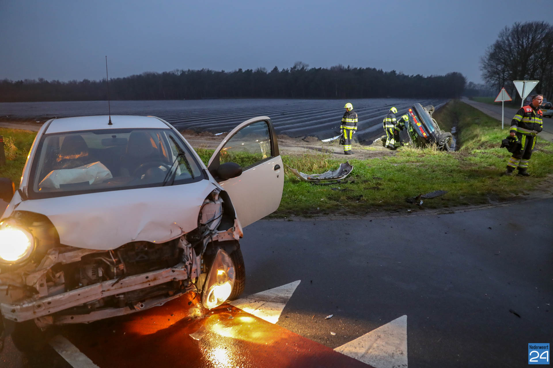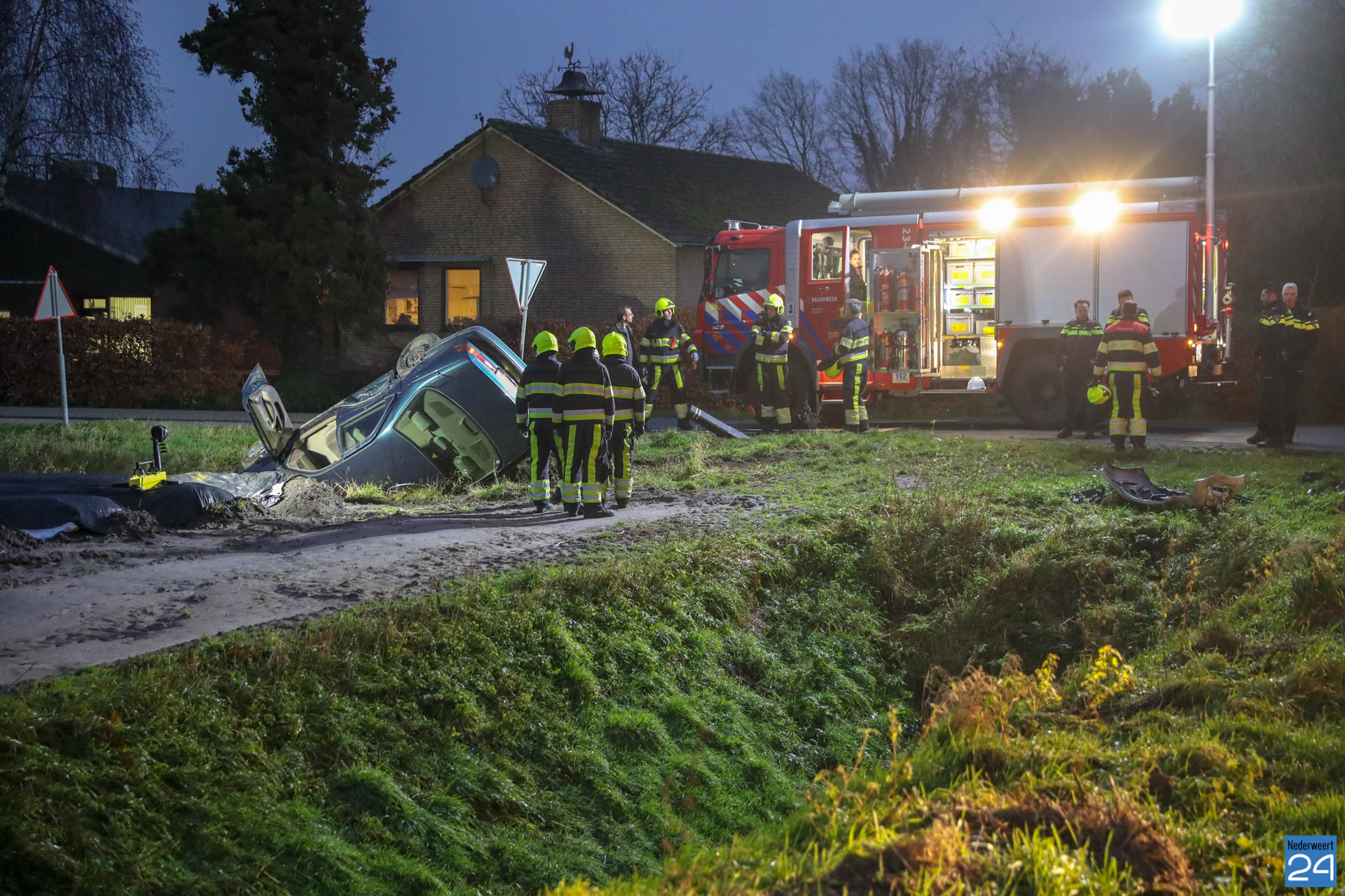 Woensdagmorgen is een personen auto op de Boerderijweg in Heibloem op de kop in de sloot terecht gekomen nadat deze in botsing kwam met een andere personenauto. Het ongeval gebeurde ter hoogte van de kruising Staldijk – Boerderijweg.