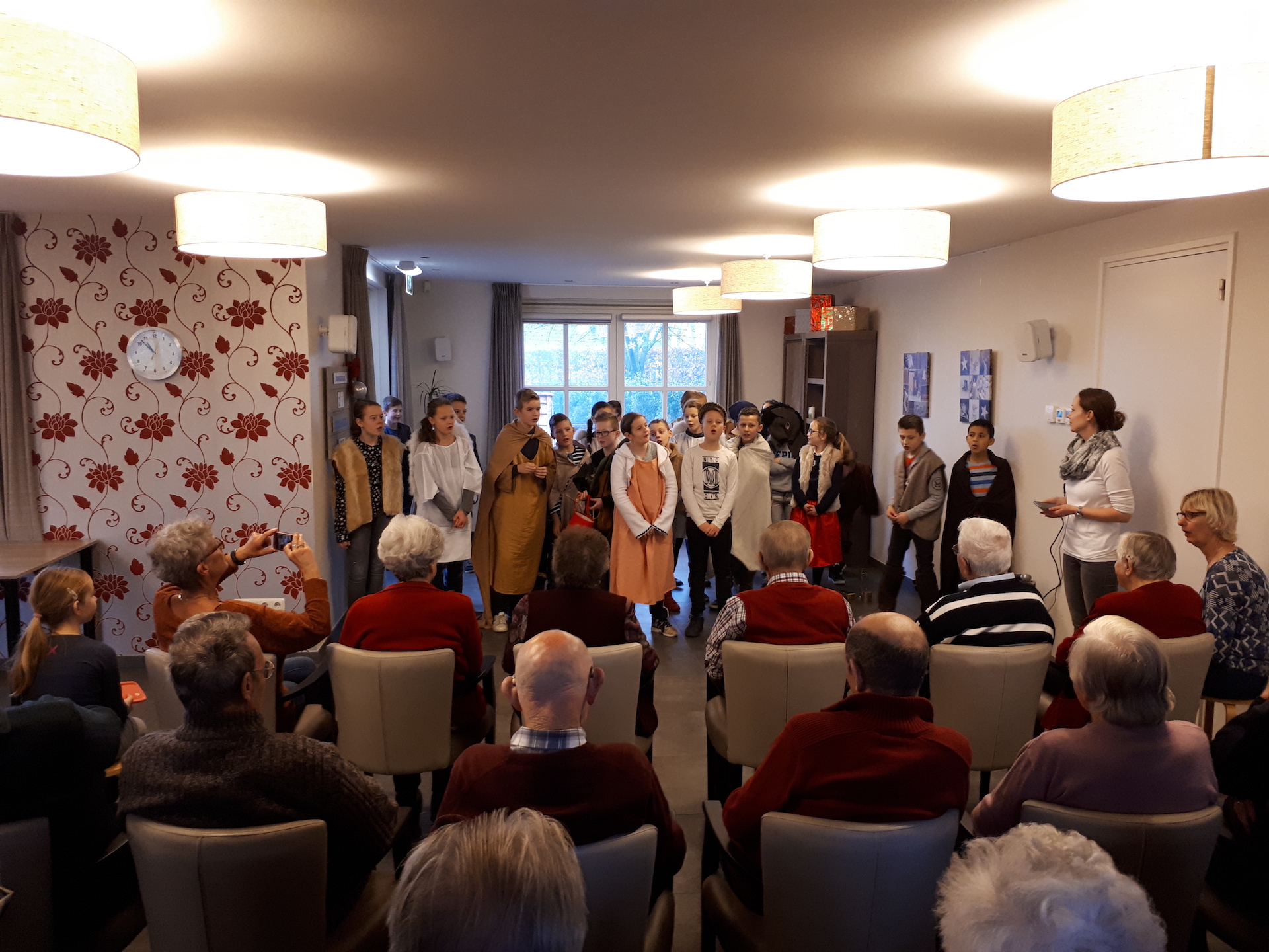 Vanuit de leerlingenraad was het mooie initiatief ontstaan om iets te doen voor de ouderen in de gemeente Nederweert. Dit naar aanleiding van een uitzending van het jeugdjournaal, waarin aandacht werd besteed aan mooie acties van kinderen die iets betekenen voor de eenzame ouderen in Nederland. Wat anderen kunnen, kunnen de kinderen van de Kerneel ook! En zo geschiedde… Het kerstverhaal werd opgevoerd en de traditionele kerstliedjes werden gezongen.