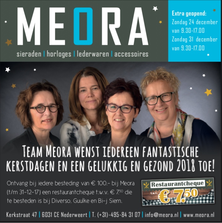 Zondag 24 december is Meora geopend van 9.30-17.00. Team Meora helpt en adviseert je graag bij het uitzoeken van een prachtig sieraad of horloge en alles wordt feestelijk voor je ingepakt.