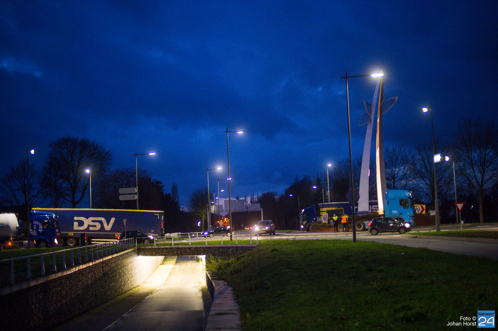 Donderdagavond heeft een vrachtwagen zijn oplegger verloren bij het oprijden van de turborotonde ter hoogte van de Ringbaan-Noord en de Eindhovenseweg in Weert.