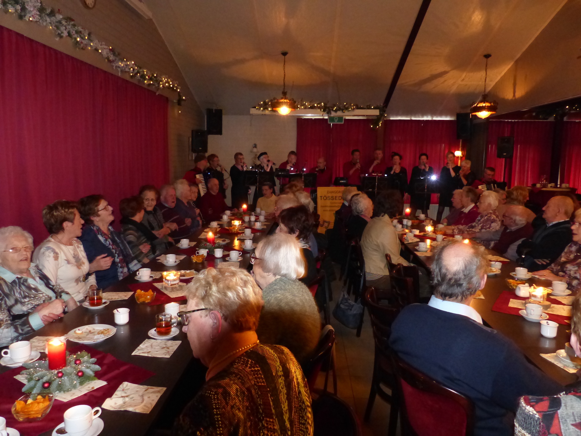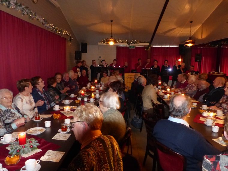 Dankzij de inzet van alle vrijwilligers uit Ospel en Nederweert kwamen de gasten niets tekort. De traditionele  oliebollen en wafels vonden gretig aftrek. Onder het genot van een drankje werd er volop “geschunkeld” en meegezongen met de Limburgse en Hollandse liedjes, welke door Zanggroep Tössedoôr ten gehore werden gebracht.