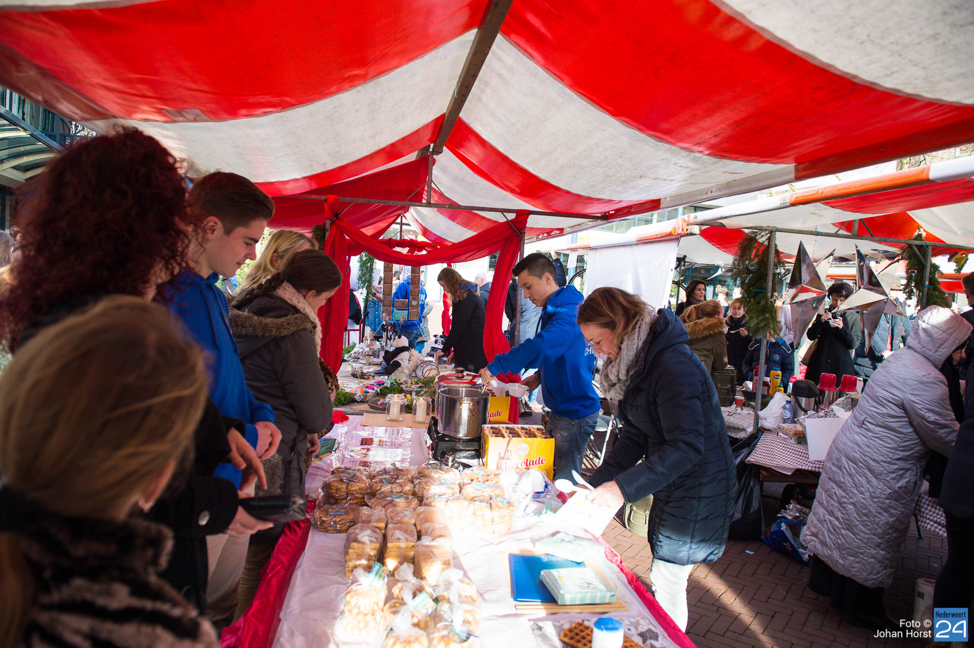 De kramen werden vooral bevolkt door goede doelen. Wafels koekjes en creatieve uitingen, allemaal voor het goede doel. Even verderop in de stad nog veel publiek op de been voor de laatste koopjes van 2017.