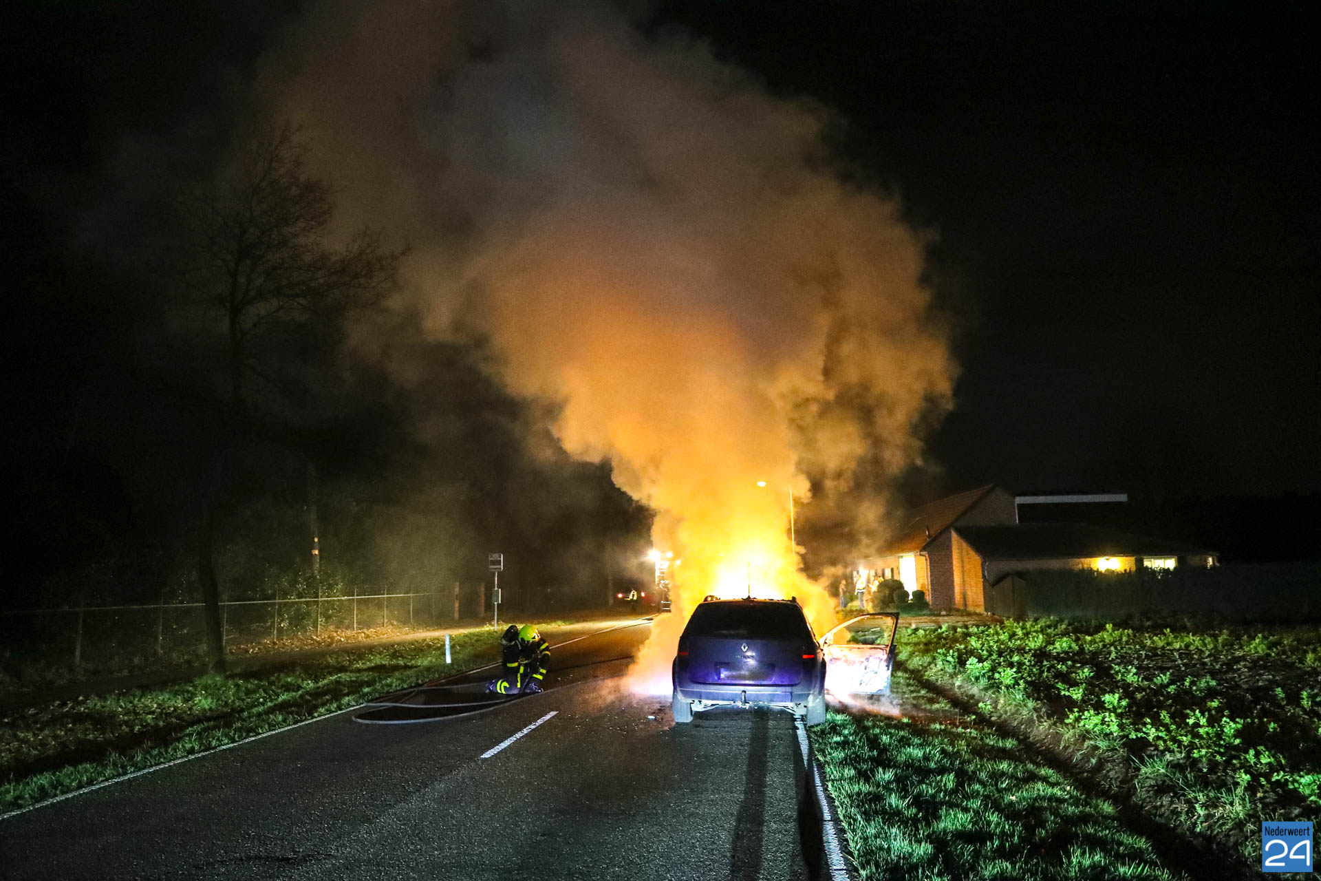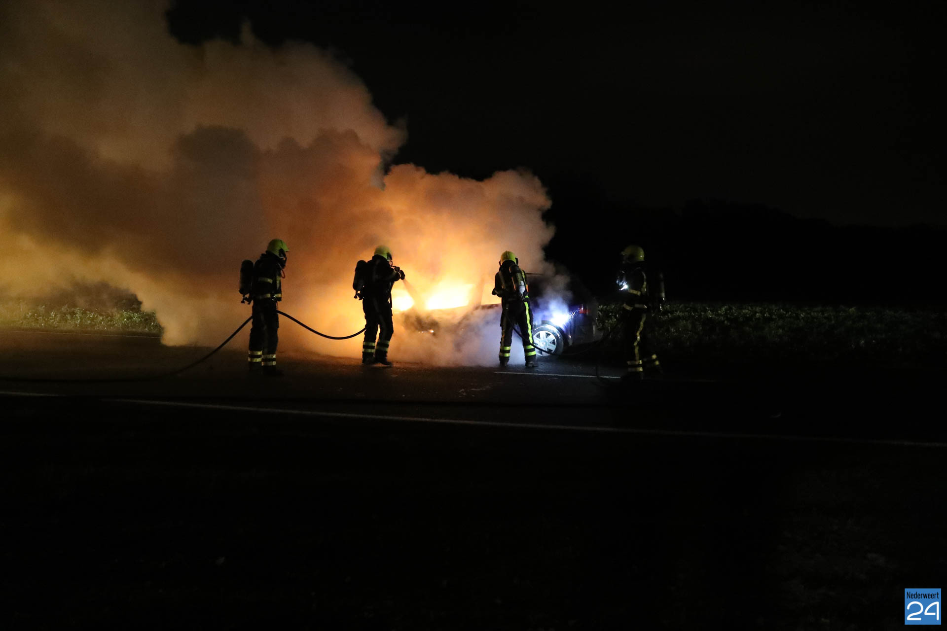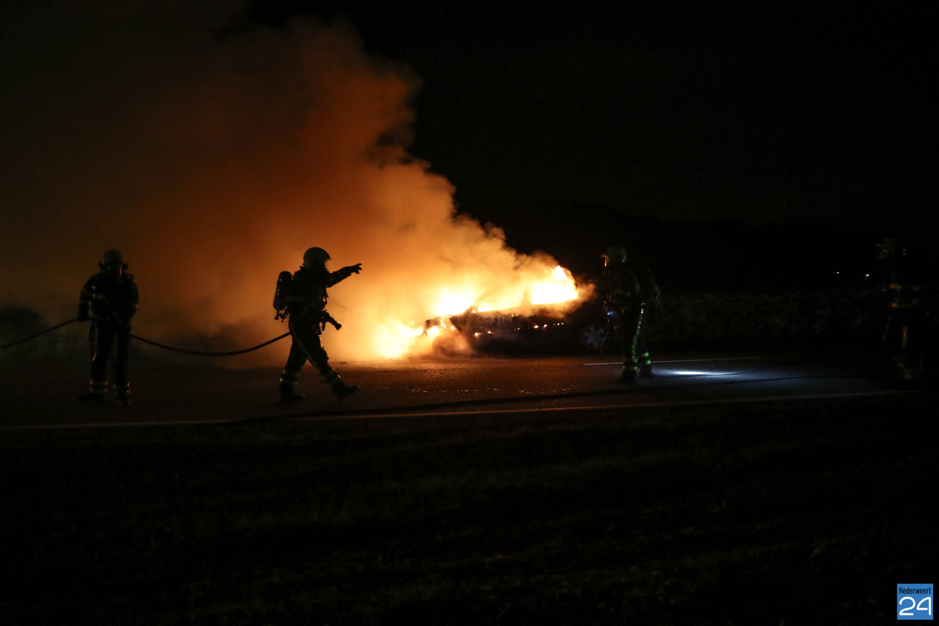 Maandagavond is een auto volledig uitgebrand op de Houtsberg in Nederweert-Eind. De brandweer heeft het voertuig geblust maar de auto is volledig verwoest.