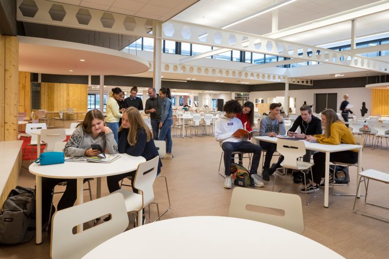‘Ontwikkel een modern, transparant, en prettig onderwijsgebouw waar leerlingen zich thuis voelen, met een goede logistiek waar iedereen makkelijk de weg kan vinden én dat ruimte en flexibiliteit biedt aan het onderwijs van vandaag en morgen.’ Dat waren uitgangspunten voor de ontwerpstudie van Architectenbureau Frencken Scholl. In goed overleg zijn de mogelijkheden onderzocht en ontwerpen gemaakt om het gedateerde uiterlijk van de buitenkant en de binnenkant ingrijpend aan te pakken.