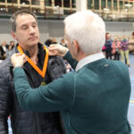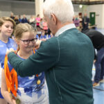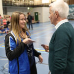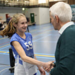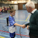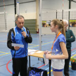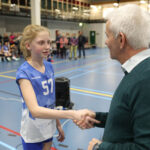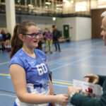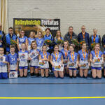 De Meisjes C1 werden als eerste gehuldigd. Een team met speelsters die vorig seizoen nog in de CMV6 speelde. Nadat eind vorig seizoen de teamindelingen bekend werden heeft Roland deze groep op zich genomen en is gestart met de trainingen en de teamvorming. Met hulp van de coaches Irene en Cora is er een mooie ontwikkeling gekomen voor dit team. In de 2e klasse werd er direct veel strijd geleverd en werden wedstrijden op een spannende manier gewonnen. Het team bleef tot het einde doorstrijden voor het kampioenschap en gaf niet op. Terecht bleek, want uiteindelijk werd het kampioenschap behaald met een miniem verschil van 1 set meer gewonnen (van totaal 33 sets) werd het kampioenschap op de laatste speeldag veilig gesteld. Een hele knappe prestatie waarvoor we dit team vandaag gaan huldigen. Proficiat met dit kampioenschap voor Lonne, Floor, Maud, Mila, Bodine, Floor, Lisa en Hiske.