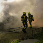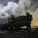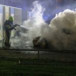 Een auto die naast de brandende auto stond heeft waarschijnlijk lichte schade opgelopen. De berger is opgeroepen om de auto weg te slepen.