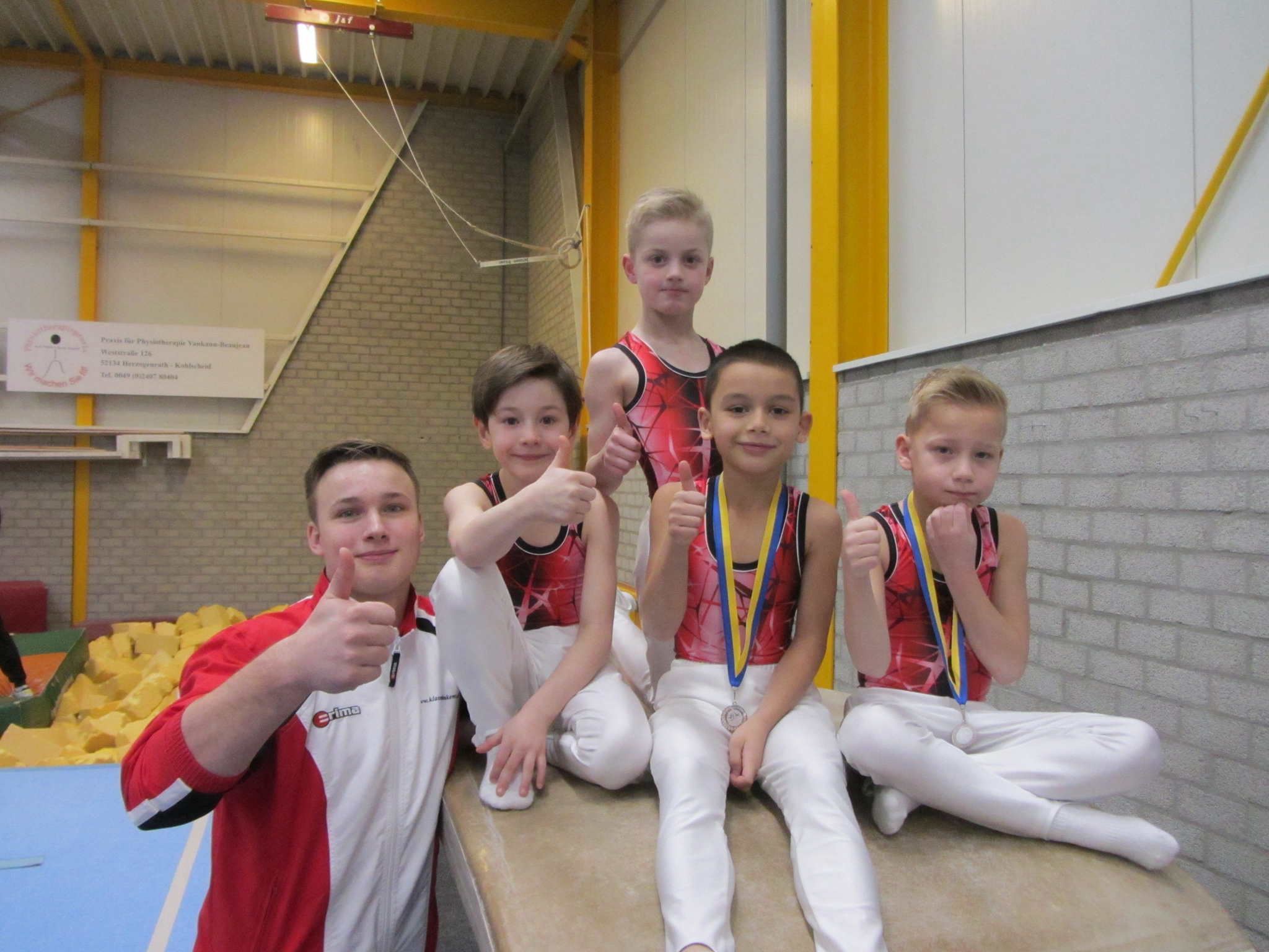 Dèvan Ho, Freek Driessen, Jort Jacobs, Max Yang en Stan Gielen hebben de afgelopen weken onder leiding van trainer Don de eerste stappen gezet in de keuzestof. Dit houdt in dat ze zelf hun oefeningen mogen samenstellen. Deze moeten ze op de Olympische toestellen laten zien: het voltigepaard in plaats van de paddenstoel, de hoge brug in plaats van de kleine en voortaan de pegasus bij de sprong. De jongens hebben iedereen verrast door te laten zien dat ze al grote stappen hebben gezet sinds de clubkampioenschappen. Vooral op vloer zagen de oefeningen er al flitsend uit. Voor het publiek was het een mooie keuzeoefenstof wedstrijd om naar te kijken.