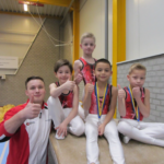 Maar het ging de hele wedstrijd gelijk op en het werd na vijf toestellen toch nog heel spannend. Het was spanning ten top! Helaas had Almar op brug twee hele dikke blaren opgelopen en was het niet verantwoord om nog op rekstok te turnen. Dat was een deceptie en hij baalde enorm. Toch hartstikke tevreden over deze wedstrijd kijken wij al uit naar de volgende. Daar zal Almar dan ook zijn nieuwe rekstokoefening kunnen laten zien. Resultaten waar de jongens allemaal trots op mogen zijn, Proficiat heren.