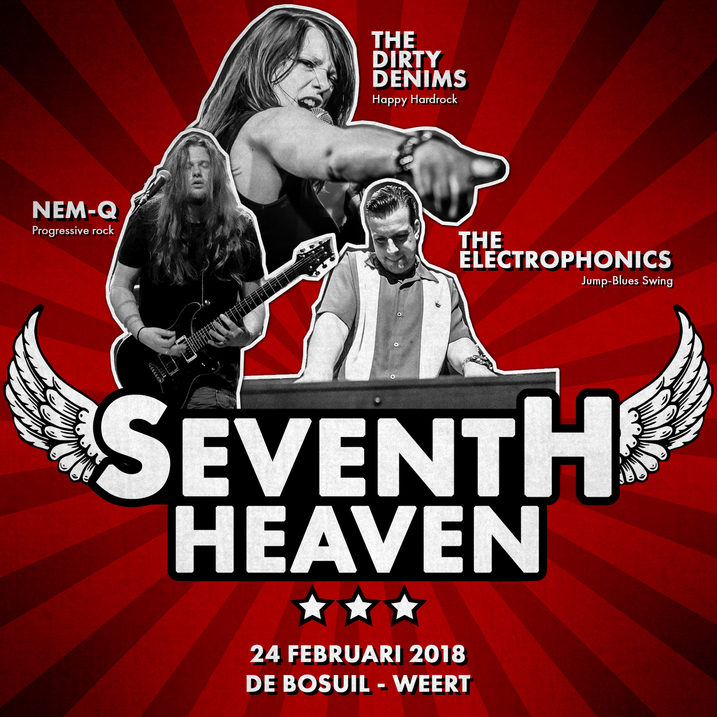 Zaterdag 24 februari 2018 vindt er een bijzondere avond plaats: 7th Heaven in De Bosuil Weert. Tijdens deze avond zullen de bands van de broers en zus Ivo, Paul en Mirjam Sieben (geboren en getogen in Nederweert) hetzelfde podium betreden met de bands The Electrophonics (Jump-Blues Swing), Nem-Q (Progressive Rock) en The Dirty Denims (Happy Hardrock). Waar maak je zo’n speciale en gevarieerde avond nou mee?