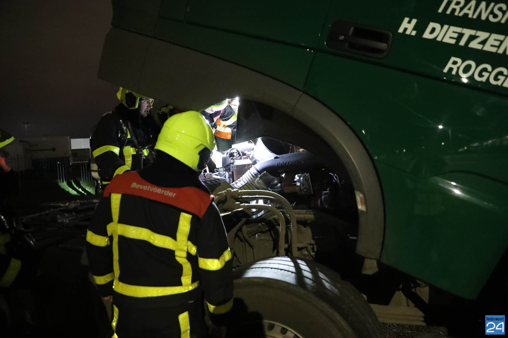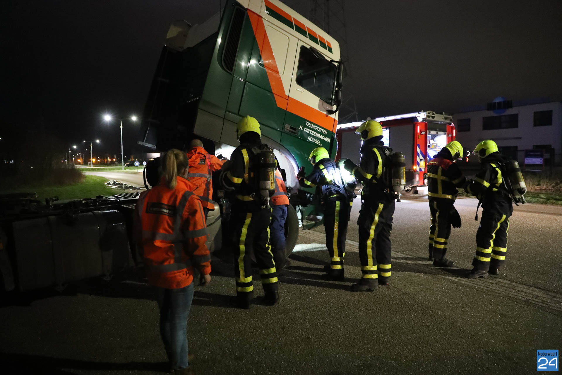 Met een emmer water was het vuurtje snel geblust. De vrachtwagen zal eerst nagekeken moeten worden voordat deze weer veilig de weg op kan. De vrachtwagen was overigens niet bij Allers Bedrijfswagens in onderhoud geweest. De trekker kwam de oplegger ophalen.