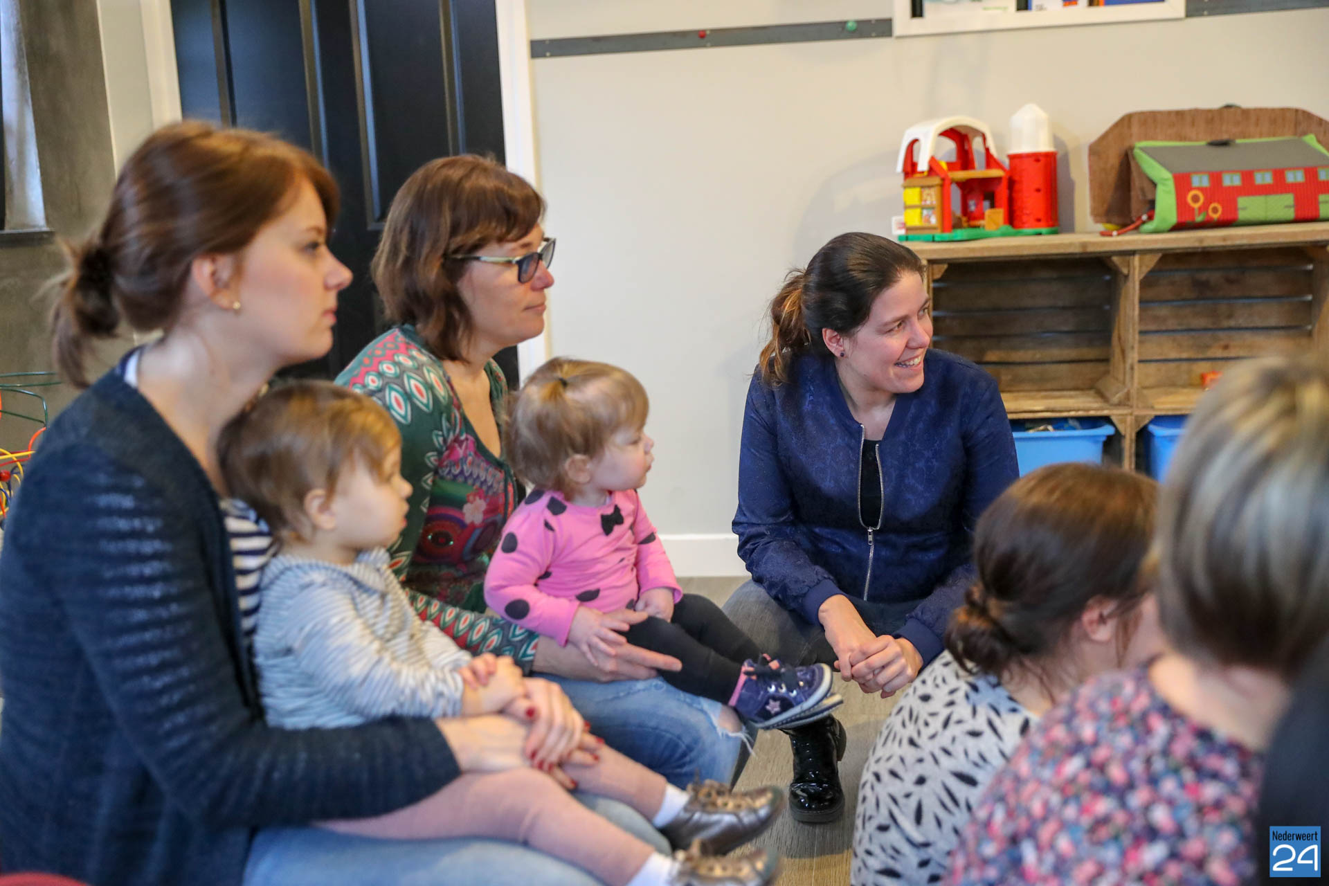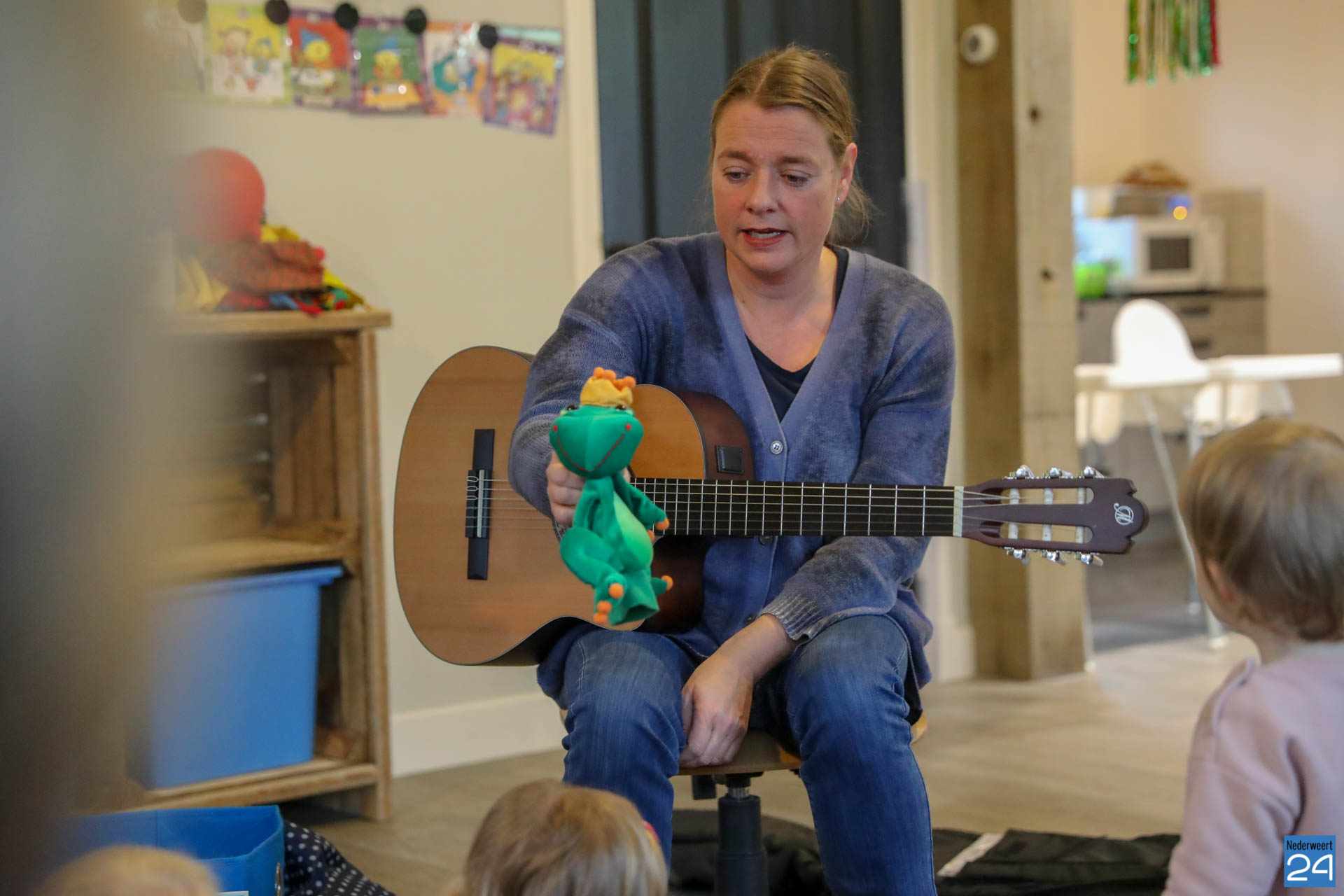 Alle dieren van het boek kwamen aanbod, de schildpad, het muisje, de ooienvaar, de kikker, de vos én natuurlijk de tijger; maar zachtjes… de tijger slaapt. De kleine kindjes vonden de gitaar indrukwekkend en genoten van de mooie kinderliedjes gezongen door Anouk. De grote peuters vonden het natuurlijk leuk om even te dansen op de muziek.