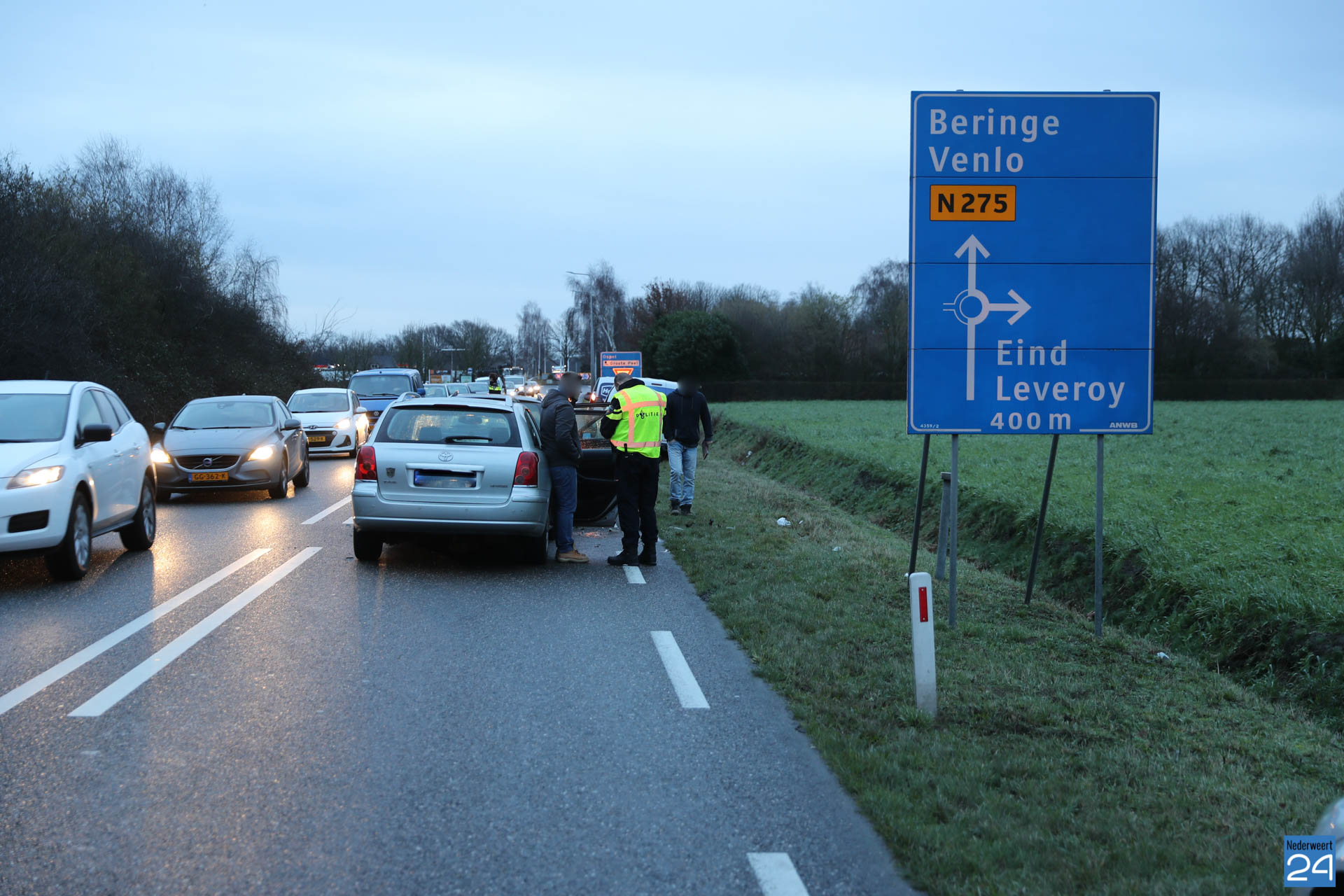 Donderdagmorgen heeft er een kop-staart botsing plaatsgevonden op de Randweg Zuid (N275) bij Nederweert. Bij het ongeval waren drie personenauto’s betrokken.