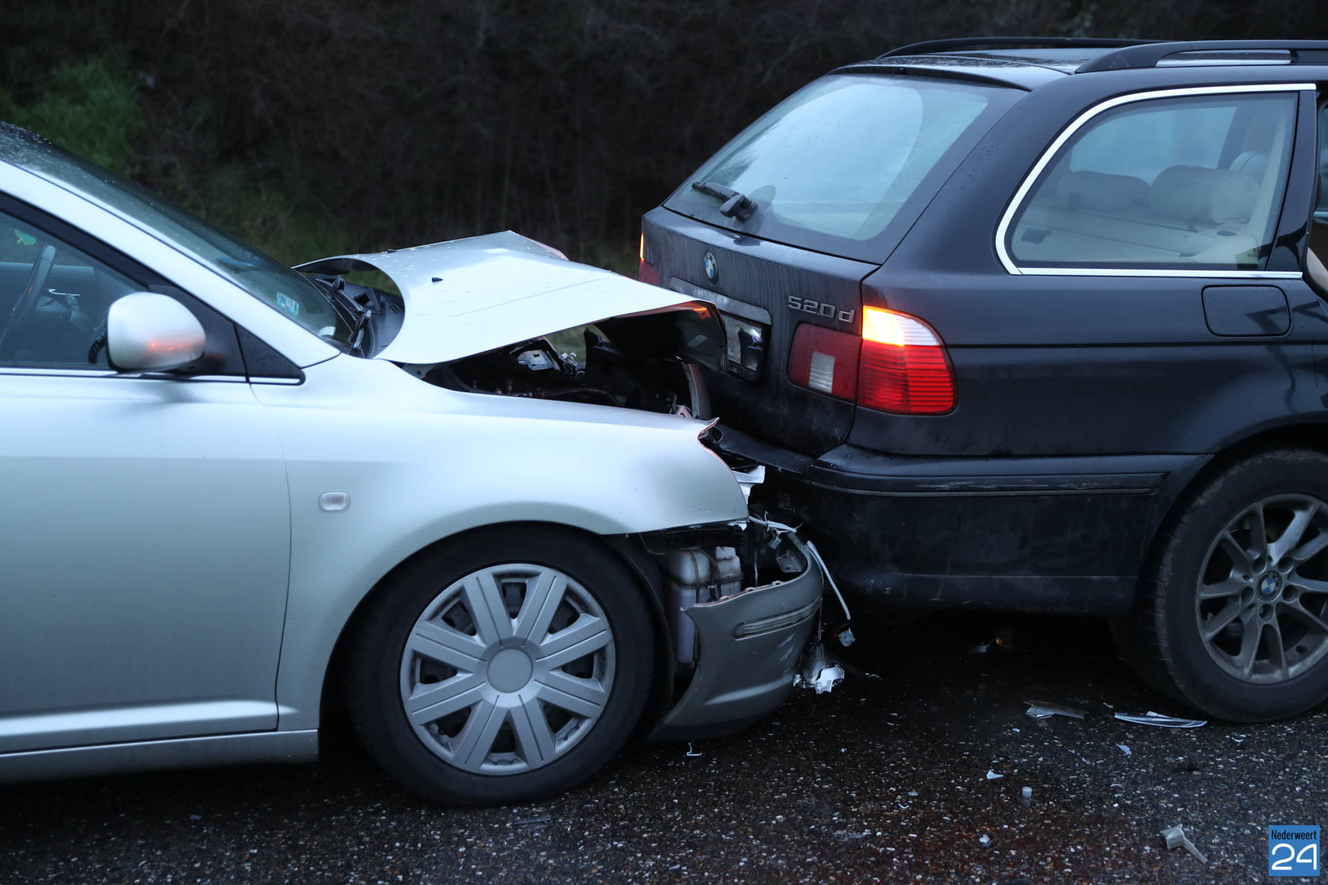 Het ongeval gebeurde op de Randweg Zuid vanuit Nederweert vlak voor de rotonde bij Nederweert-Eind. Door onbekende oorzaak botsten de drie auto’s achter op elkaar. Er raakte niemand gewond maar de inzittenden zijn flink geschrokken.