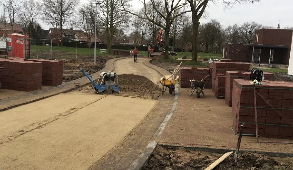 Drukte in de nieuwbouwwijk Merenveld. De afgelopen week zijn daar de bestratingswerkzaamheden hervat. De zachte winter maakt dat de stratenmakers sneller aan de slag kunnen dan verwacht. En dat is goed nieuws voor de nieuwe bewoners. De Maximastraat was afgelopen week als eerste aan de beurt.