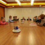 De afgelopen weken is gewerkt over het thema “de gemeenteraad”, dit in het kader van de komende gemeenteraadverkiezingen. Als afsluiting van dit thema is woensdagmorgen een bezoek gebracht aan het gemeentehuis. Hier hebben de leerlingen, onder leiding van de burgemeester Evers, een kinderraadsvergadering gehouden. Er is gediscussieerd over een stelling en zodoende is wat geleerd is in de praktijk toegepast.