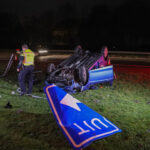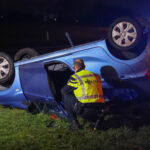 Vrijdaggavond is een auto over de kop gevolgen ter hoogte van wegrestaurant La Place op de A2 bij Nederweert.