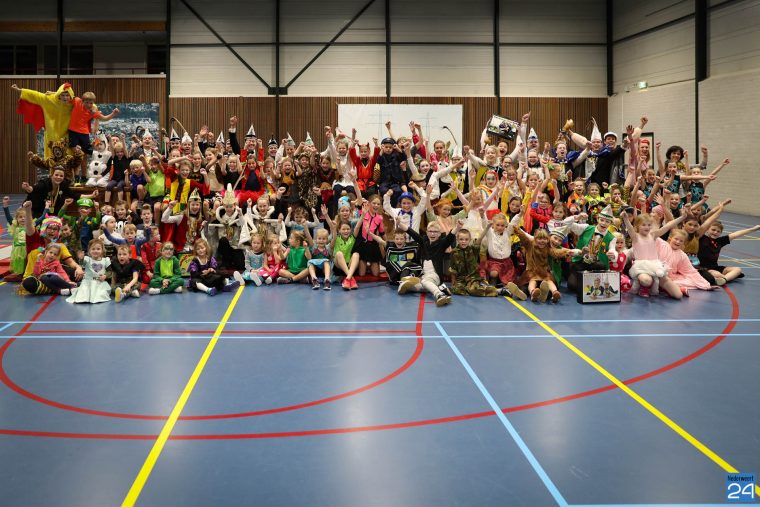 Ruim 100 kinderen van 6-9 jaar kwamen woensdagavond om 17.30 uur verkleed naar Sportcentrum De Bengele in Nederweert. Er stond een circuit klaar met spellen van ‘Vrolijk spel‘. Ook dit hoort inmiddels vast bij de ‘carnavalstraining‘. Tussendoor werd er een paar keer gedanst en de polonaise gelopen en kregen de kinderen wat de drinken en chips.