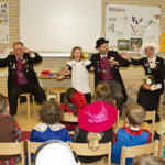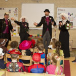 Aanwezig waren de bode, de onechte zus van de bruid en uiteraard het bruidspaar. In 3 kleutergroepen hebben ze het boekje “Boerebroelof met Cielke en Bear” voorgelezen. In alle klassen werd er gezongen, gedanst en uiteraard ontbrak de polonaise ook niet. Als verrassing kregen alle kinderen en de juffrouwen een mooie kleurplaat en ballonnen met sticker van de Boerebroelof van Venlo.