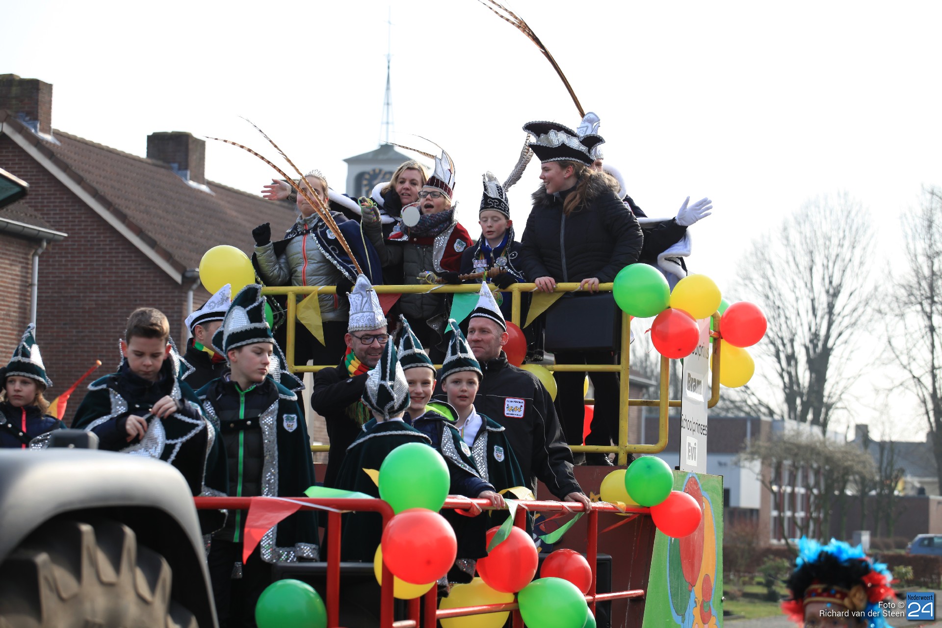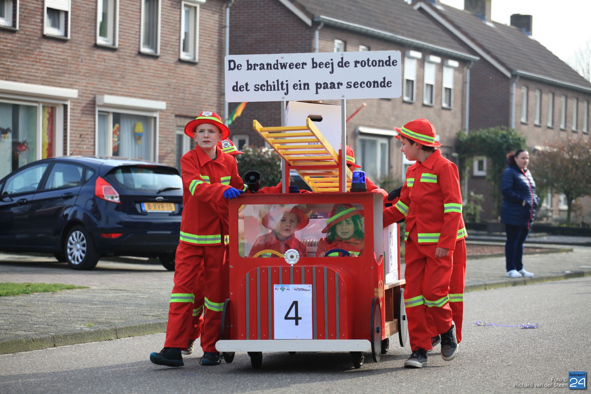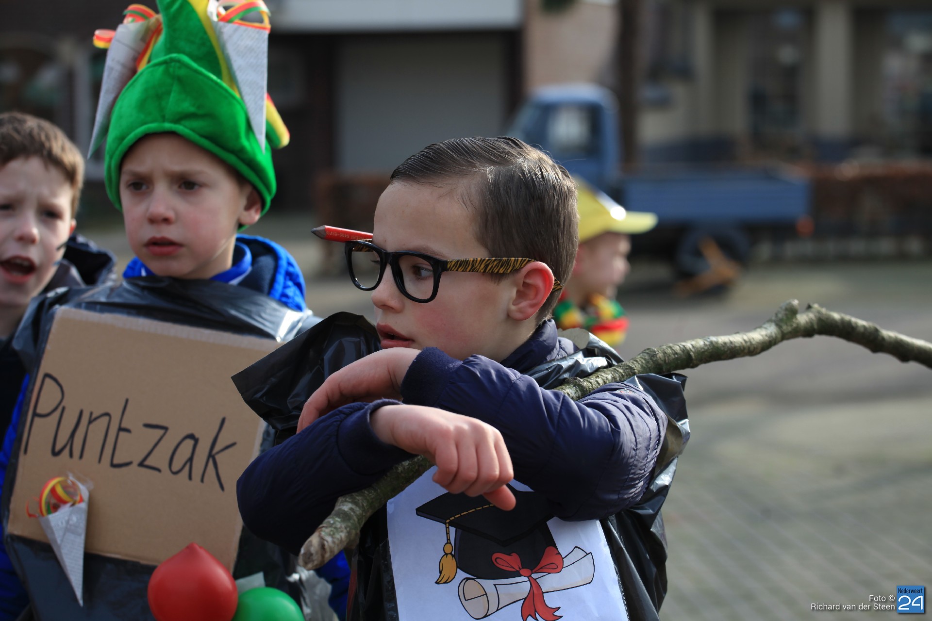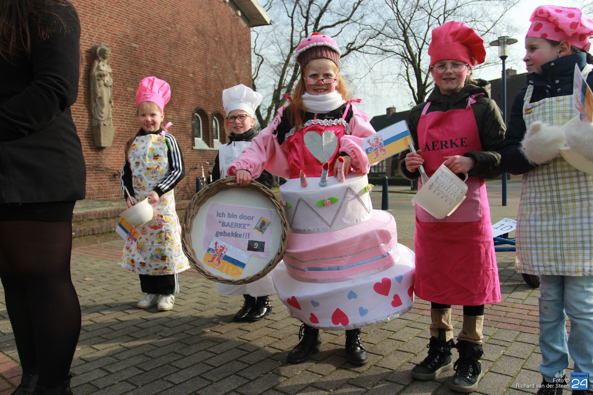 Het was koud maar droog en er stond gelukkig niet al te veel wind. Er stond veel publiek langs de kant van de weg en een goede “Vastelaovendj-stumming” maakte dat de schooloptocht er weer fantastisch uitzag. Alle kinderen deden actief mee én ook de teamleden stonden er weer gekleurd op.