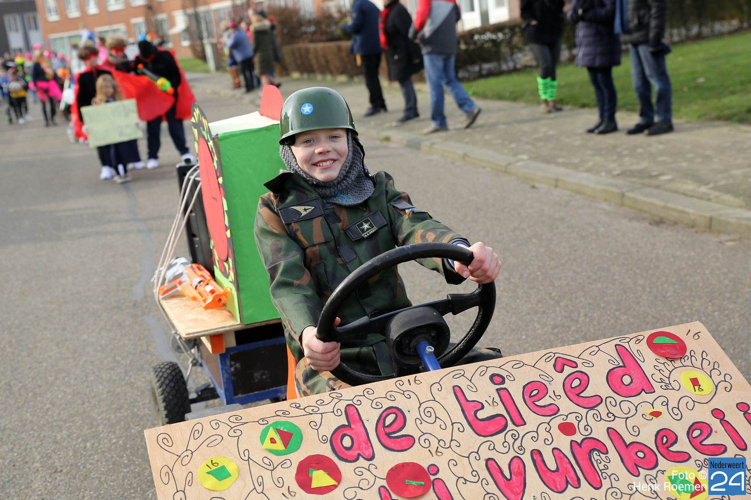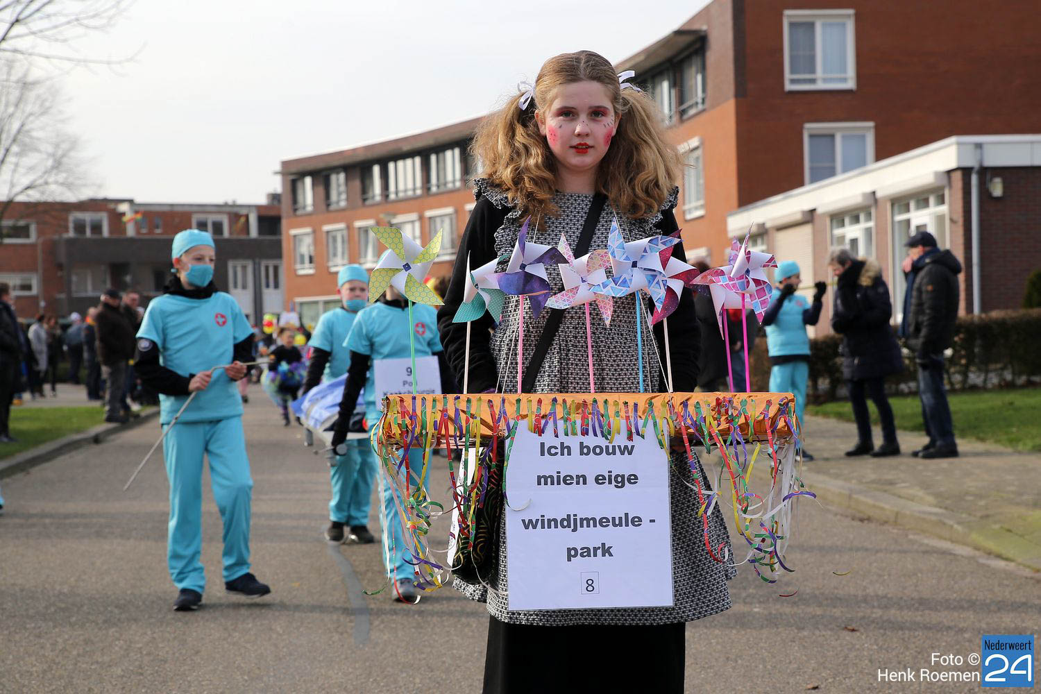 De kinderen genoten zichtbaar, omdat ze eindelijk hun mooie creaties aan het toegestroomde publiek mochten laten zien. Het was koud maar desondanks waren er vele papa’s en mama’s, opa’s en oma’s en andere familieleden toegestroomd om de optocht met verschillende kleurrijke wagens en groepen te aanschouwen.