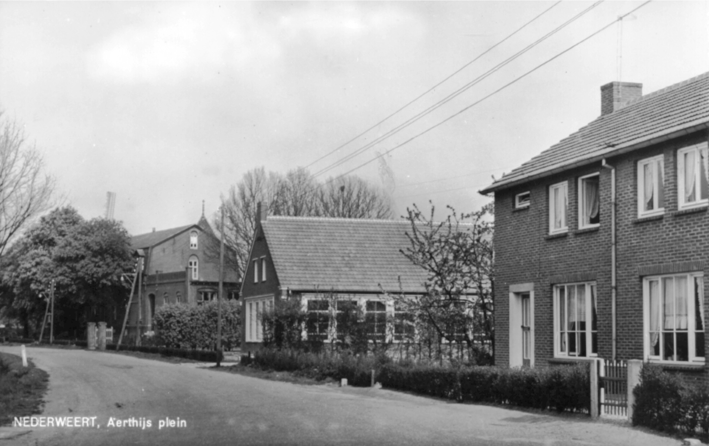 Op de ansichtkaart uit de jaren ’60 is het nog goed te zien: het St. Annaklooster van de zusters Franciscanessen, annex meisjesschool. Na gelobby door de Ospelse pastoor Caris hadden de zusters zich in 1910 in Ospel gevestigd. Dat was een politieke zet, om door middel van een bastion van katholiek onderwijs de bestaande openbare school een hak te zetten. Daar was namelijk de anti-kerkelijke onderwijzer en schrijver Herman Maas actief en die werd door de notabelen van Ospel en Nederweert als persona non grata beschouwd. Door de komst van de katholieke school verloor Maas dan ook al snel zijn job. Niet voor niets schreven de Ospelse zusters in hun kloosterkroniek in 1911 triomfantelijk: ‘Een dag van betekenis (…). Op dien dag n.l. werd het dorp een slechten onderwijzer kwijt n.l. Meester Maas. (…) Geen wonder dat men in Ospel de tijding met vreugde ontving’. Ondanks dat de zusters pion waren in een politiek spel van de toenmalige burgemeester en pastoor, zijn ze van grote betekenis geweest voor de ontwikkeling van Ospel. Op het gebied van onderwijs en wijkverpleging (vanaf 1922) hebben ze een rol van betekenis betekend. Het klooster werd rond het midden van de jaren ’50 gesloten. Daarna vervulde het jarenlang in de vorm van gemeenschapshuis een spilfunctie in het maatschappelijke leven in Ospel. Momenteel is er het nieuwe woonzorgcentrum met de toepasselijke naam Aan Stad Thoês gevestigd.