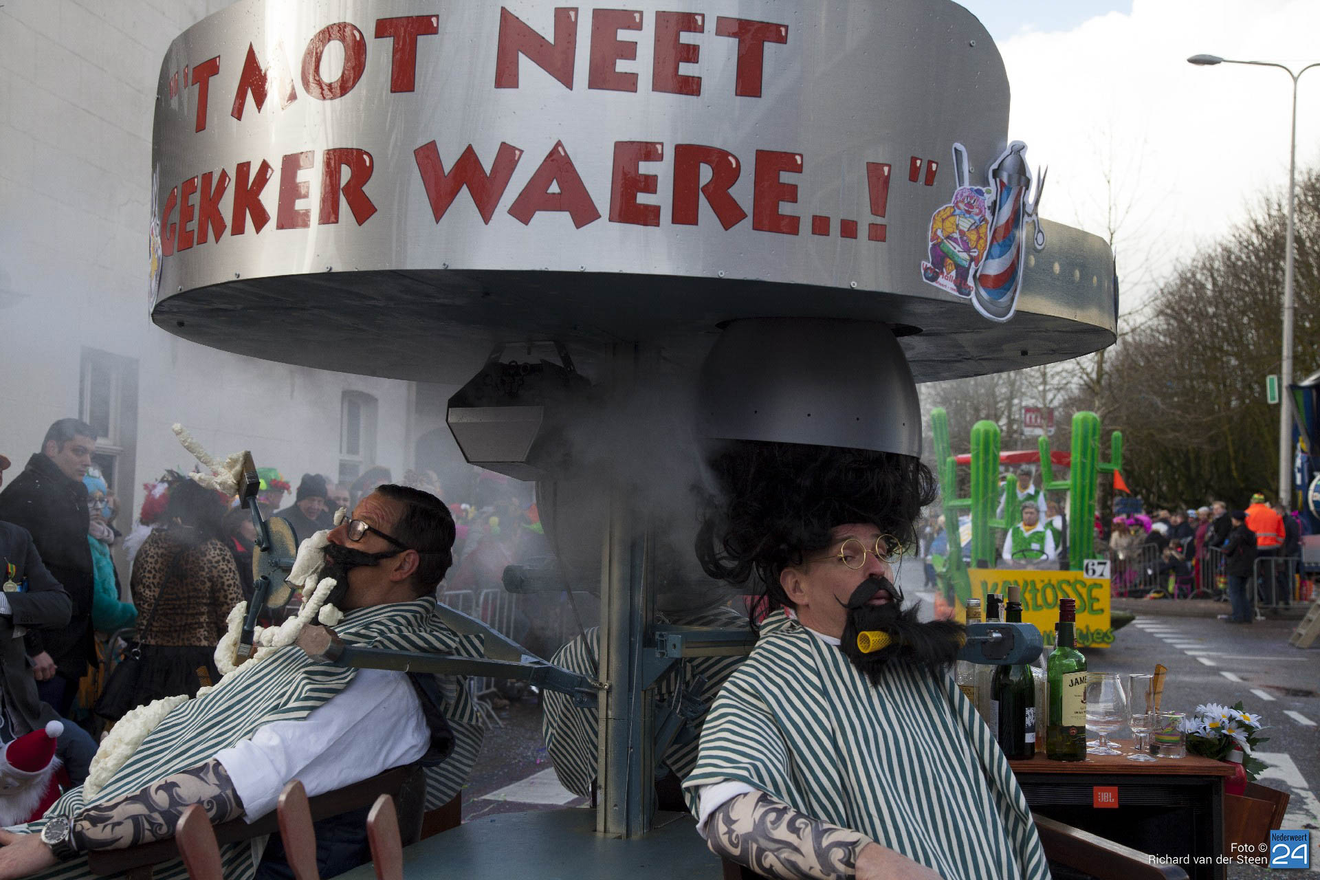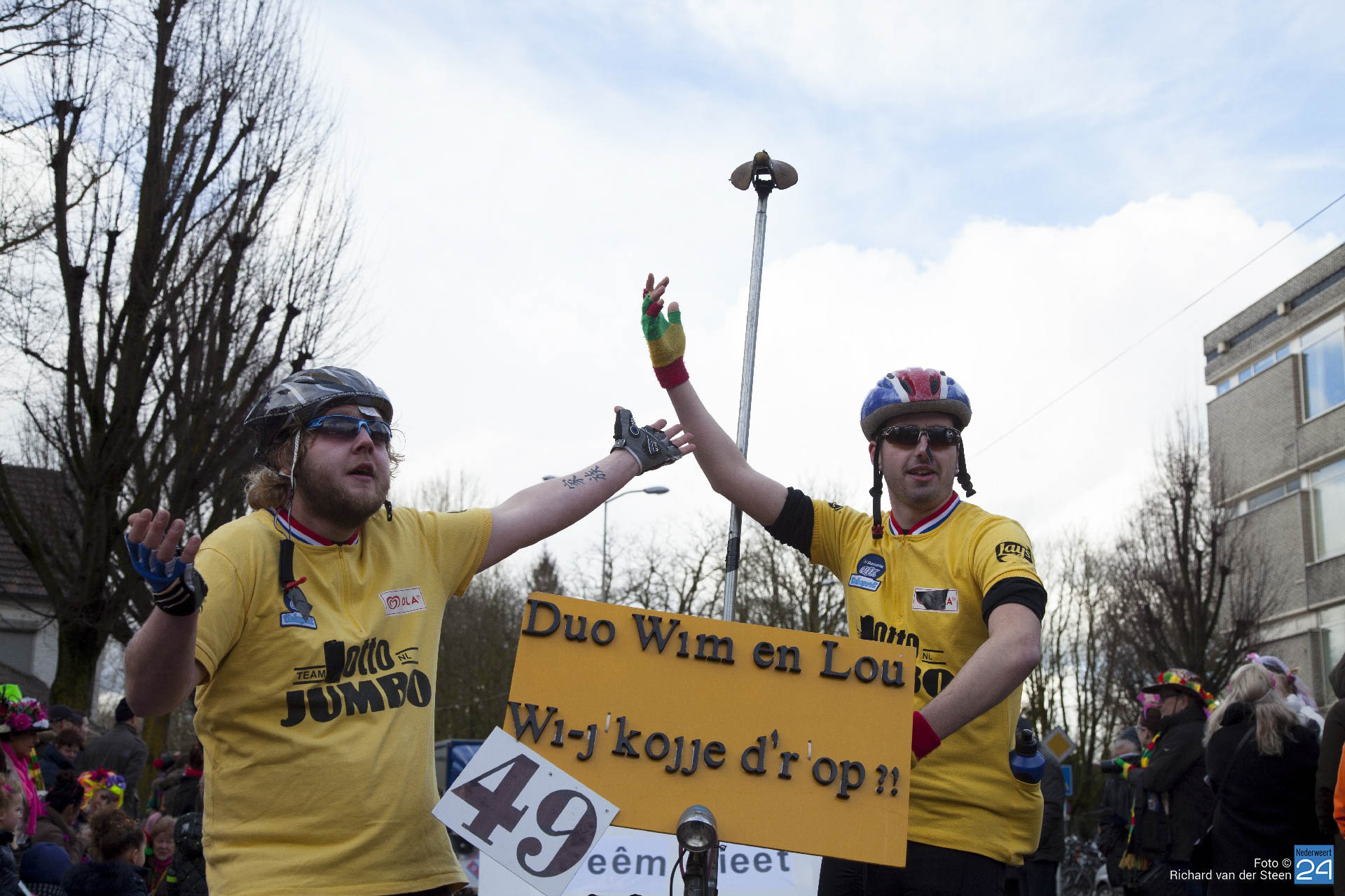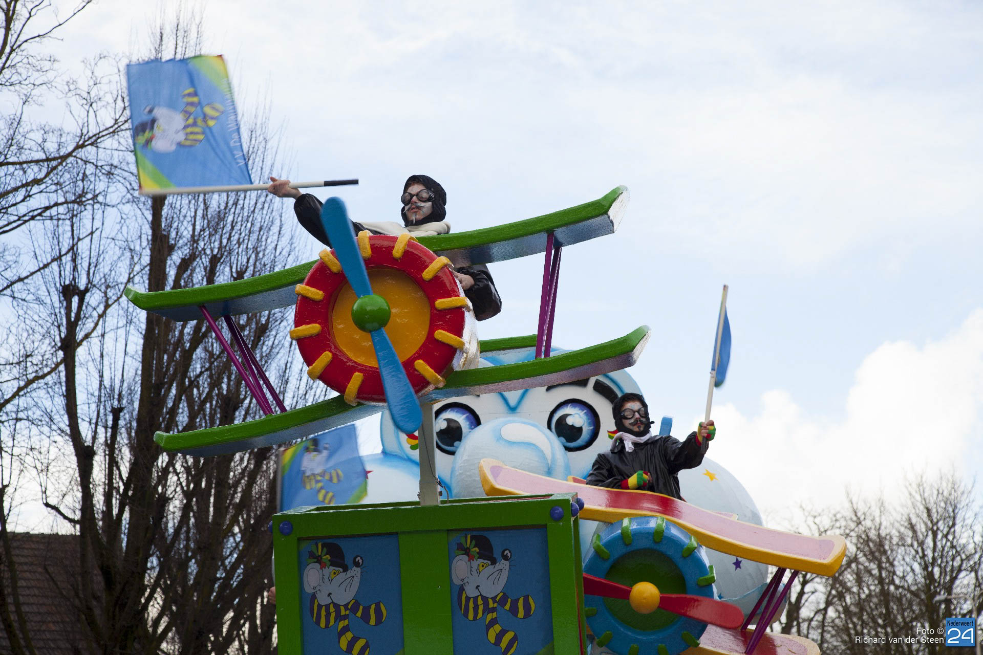 Jong en oud beleeft altijd nog veel plezier aan het bouwen van grote wagens en deden weer massaal mee aan de optocht. De kleinere groepen en individuen hadden flink hun best gedaan en wisten de lachers op de hand te krijgen.