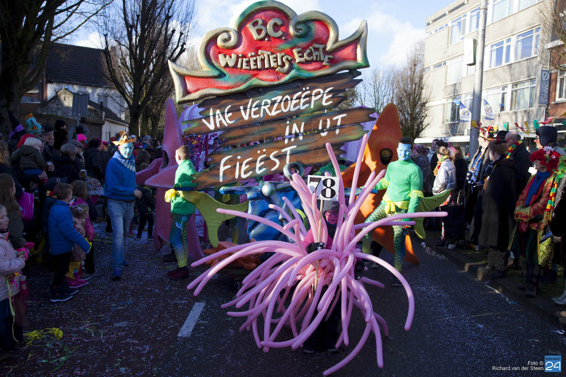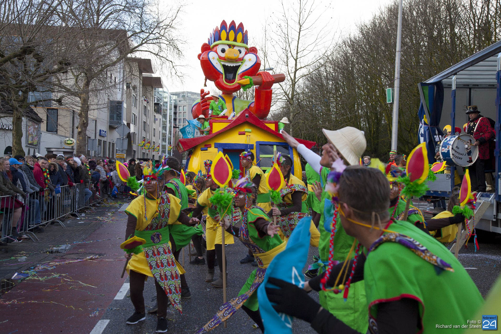 Zondagmiddag trok de grote Rogstaekersoptocht weer door de straten van Weert. Met af en toe een zonnetje en niet al te koud was het goed toeven in de binnenstad van Weert. Duizenden bezoekers stonden aan de singel om een glimp op te gevangen van alle mooie praalwagens.