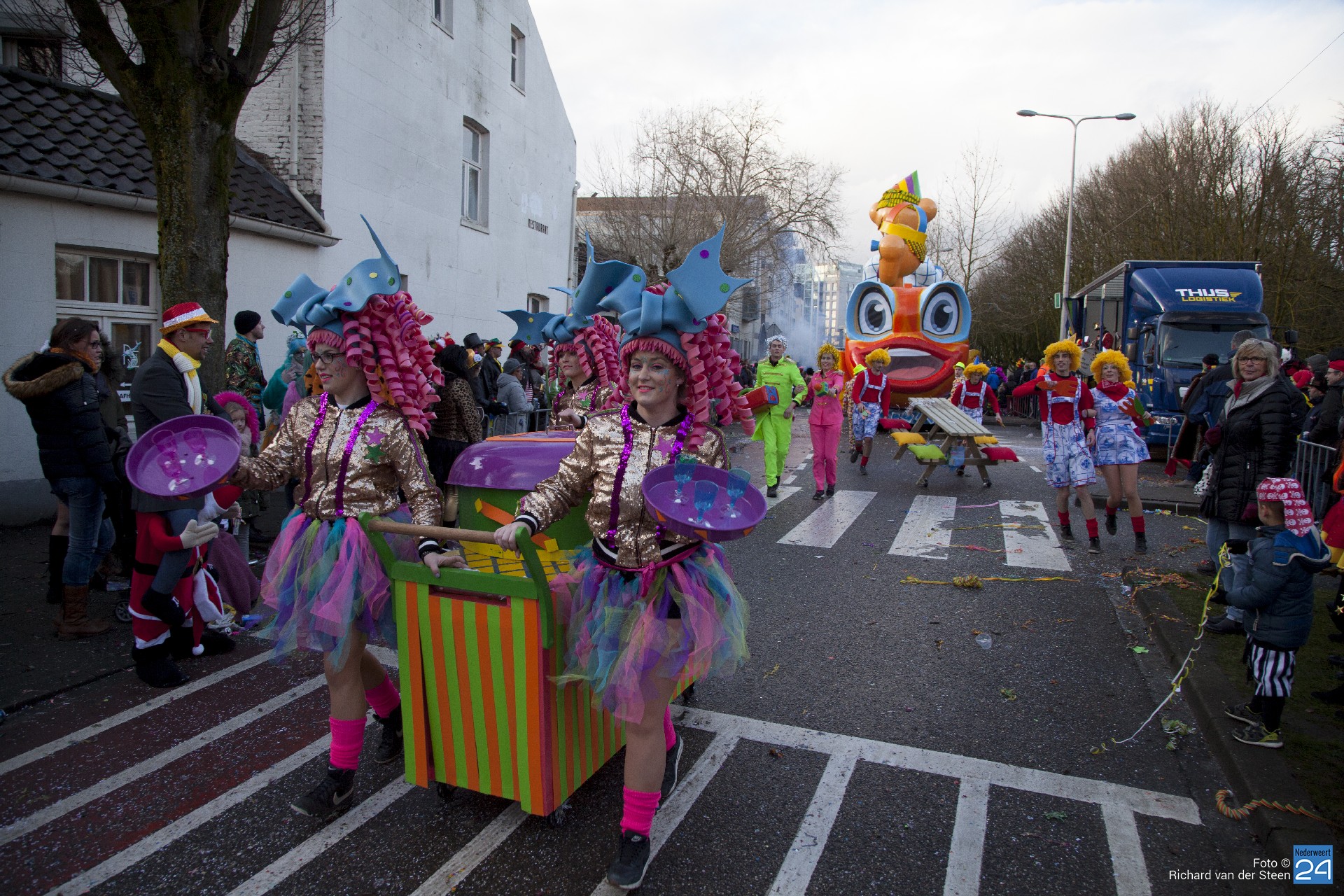 Op zondagmiddag 11 februari 2018 trok de grote vastelaovendjoptocht van Stadsvastelaovendj vereiniging de Rogstaekers door de binnenstad van Weert. Daar waar het ’s morgens nog plensde van de regen veranderde het weer bij de start van de stoet in een aangenaam zonnetje. De dikke rijen toeschouwers hebben samen met Preens Phil 1e en Jeugdpreens Sep 2e naar een kleurrijk en amusant schouwspel kunnen kijken.