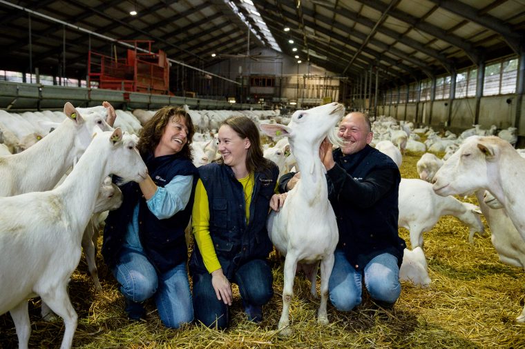 Het is een prachtig schouwspel, daarboven in de nok. In de ruim opgezette stal, waar het daglicht en de frisse wind van buiten vrij spel hebben, worden 1400 geiten dagelijks in de watten gelegd. Ze mekkeren dat het een lieve lust is, krijgen hun natje en hun droogje en belonen die goede zorg met duizenden liters geitenmelk. Melk die door melkfabrieken in Nederland, Duitsland en Frankrijk wordt verwerkt tot lekkere geitenkaas en gezonde zuivelproducten als yoghurt, karnemelk en kwark.