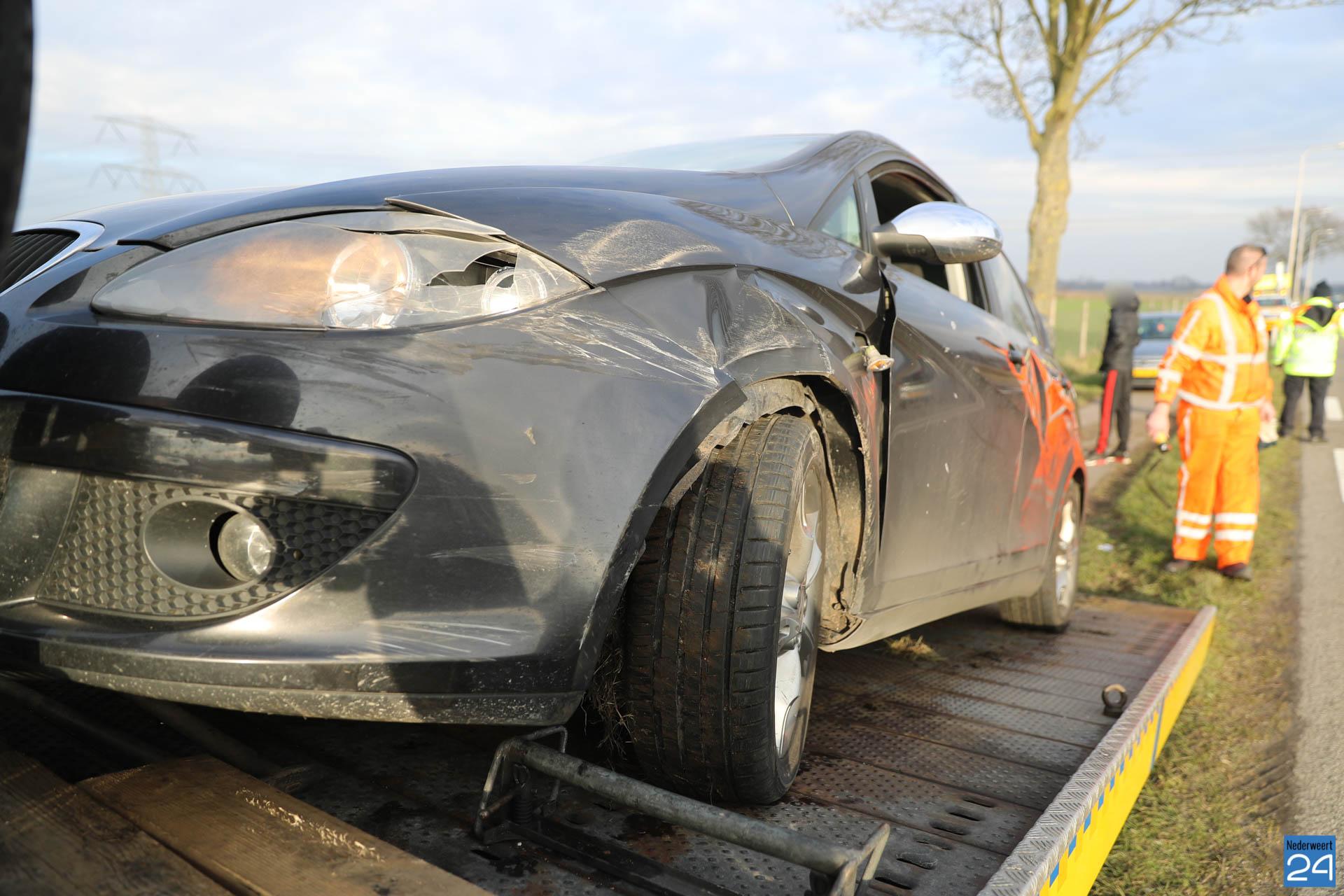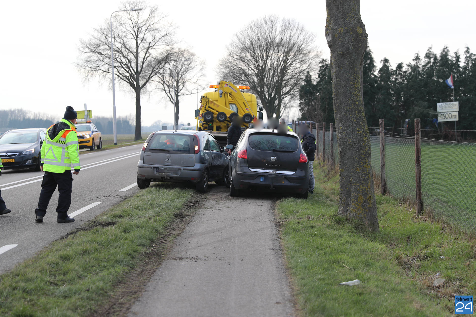 Volgens getuigen werd een auto van de weg af gereden. Dit gebeurde de N280 halverwege Baexem en Kelpen-Oler. Beide auto’s liepen hierbij flinke schade op en konden niet meer verder. Een berger heeft beide voertuigen opgehaald. Het ambulancepersoneel heeft alle inzittende nagekeken op verwondingen maar niemand raakte gewond.