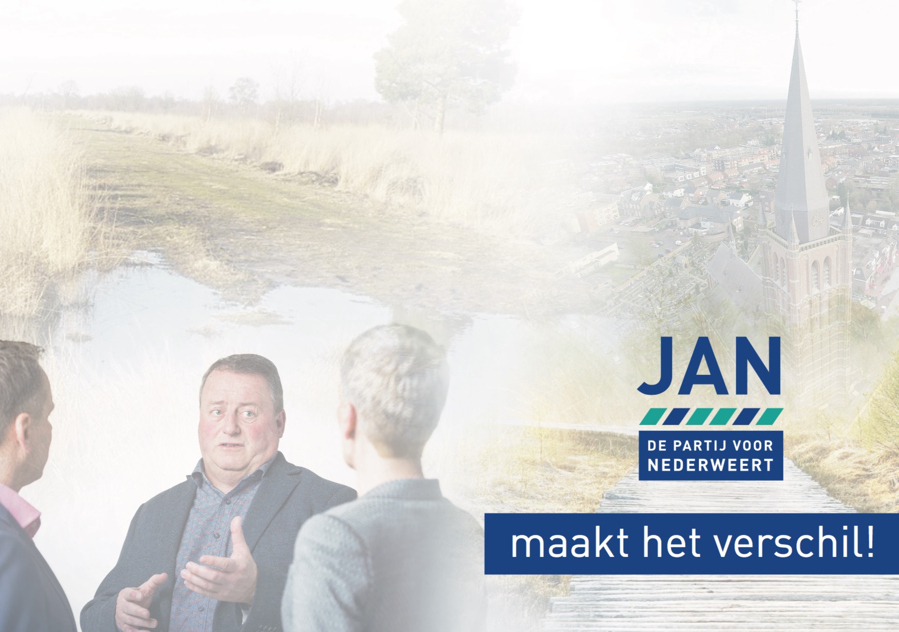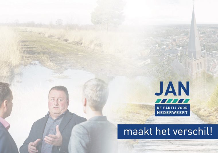 Dat JAN het verschil maakt blijkt ook uit het feit dat JAN – als echte lokale Nederweerter partij – haar verkiezingsprogramma ook in het Ni-jwieërts uitbrengt: ‘JAN meektj ’t verschil!’. Lijsttrekker Henk Cuijpers: “Veel inwoners spreken het Nederweerter dialect. Hier zijn we trots op. Dit maakt tenslotte onderdeel uit van onze identiteit. We vonden het dan ook passend om ons verkiezingsprogramma ook in ’t Ni-jwieërts te presenteren.