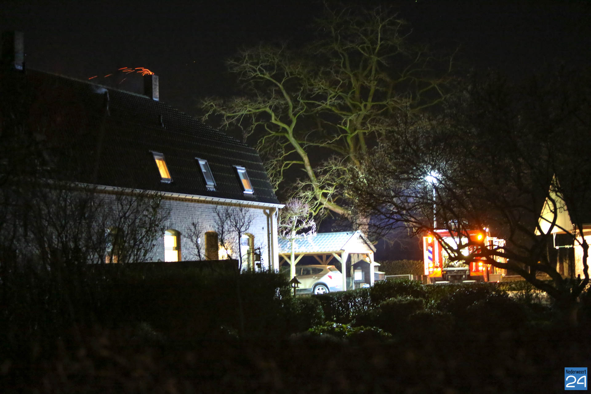 De bewoners hadden rook gezien en hebben direct de brandweer gebeld. Toen deze ter plaatse kwam zagen ze nog steeds flink vuur uit de schoorsteen komen. Ook de ladderwagen van Weert werd opgeroepen om te assisteren.