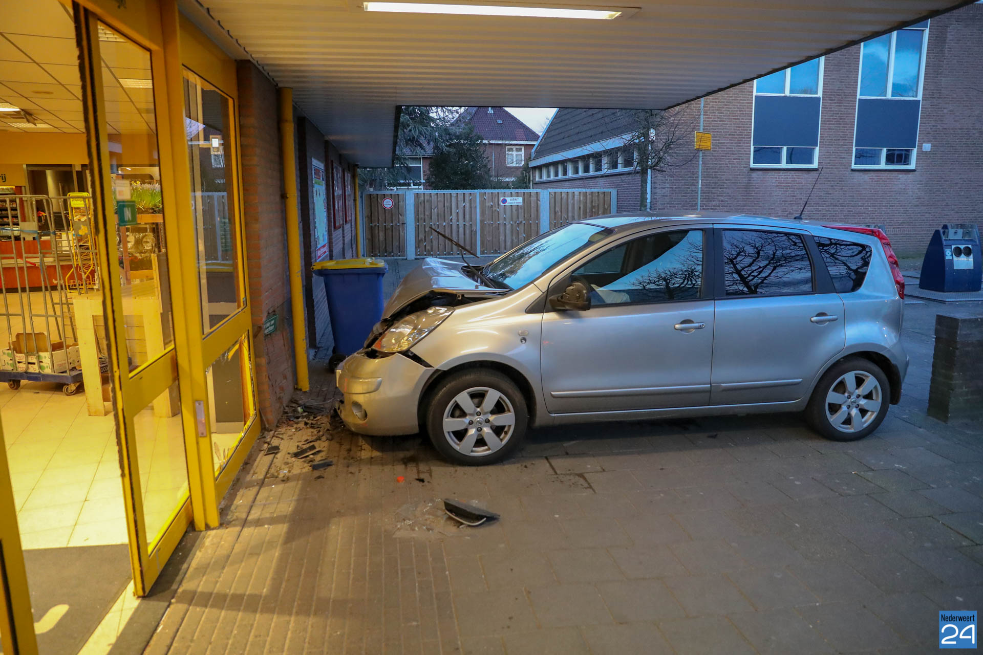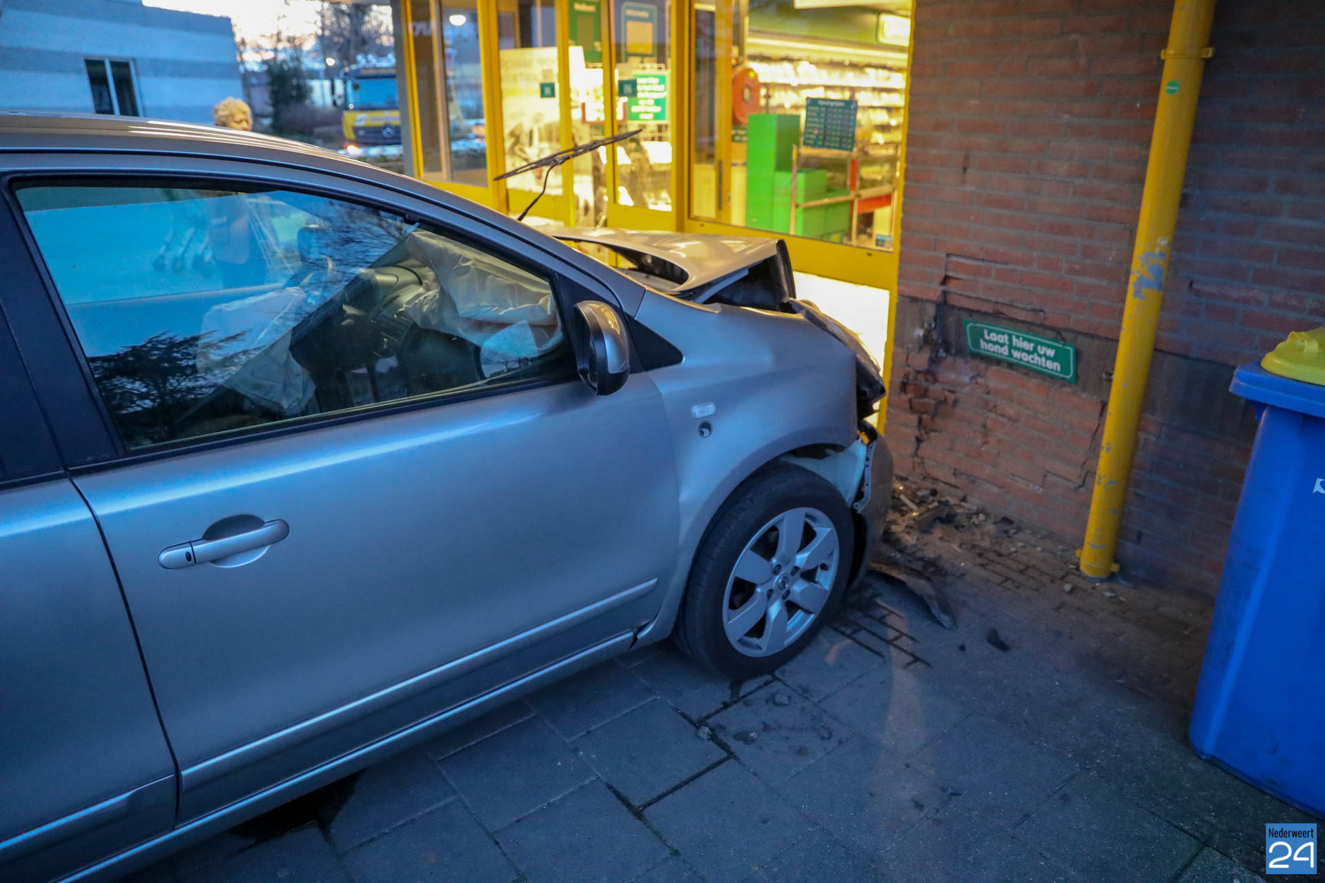 De vrouw had boodschappen gedaan en wilde naar huis rijden. Door nog onbekende oorzaak reed ze vanaf de parkeerplaats pardoes tegen de winkelpui aan. Het ambulancepersoneel heeft haar onderzocht en voor de zekerheid meegenomen naar het ziekenhuis voor nader onderzoek.