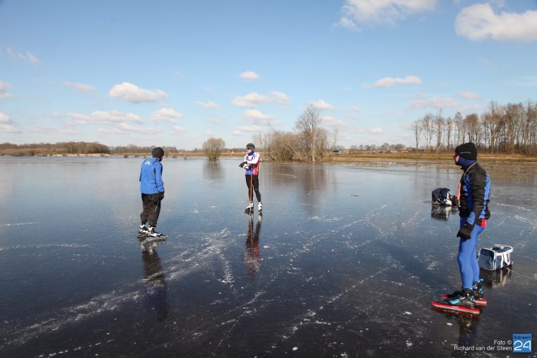 De waaghalzen schaatsen met de nodige veiligheidsmaatregelen. Ze hebben een fluitje en ijspriemen om de nek voor het geval ze door het ijs zakken. Het ijs zou volgens eigen metingen 4 cm zijn, en dus durven ze het aan.