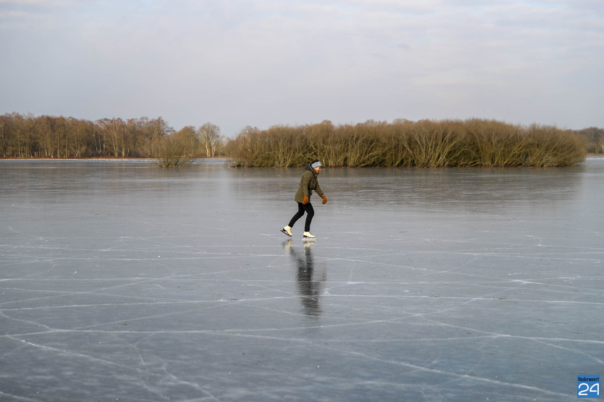 Woensdagmorgen was het nog niet verantwoord om massaal te gaan schaatsen op het natuurijs in Nederweert-Eind. Het ijs was te dun en onbetrouwbaar door de wind. Waarschijnlijk is het weghalen van bomen en struiken aan de noord-oost kant van het gebied de oorzaak van het feit dat er nu niet zo snel geschaatst kan worden.