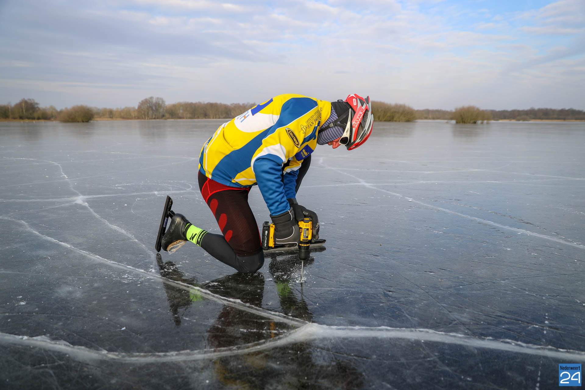 “Er kan geschaatst worden op natuurijs Sarsven en de Banen in Nederweert-Eind“, roept ijsmeester Louis Leenen donderdagmorgen. “Met ruim 8 cm is het ijs voldoende dik om het sein veilig te geven“. Wel waarschuwde hij dat je altijd voorzichtig moet zijn. Een gedeelte van het water is nog niet dicht gevroren én schaatsen op natuurijs is altijd op eigen risico, dus wees voorzichtig! De wakken zijn gemarkeerd maar je moet blijven opletten.