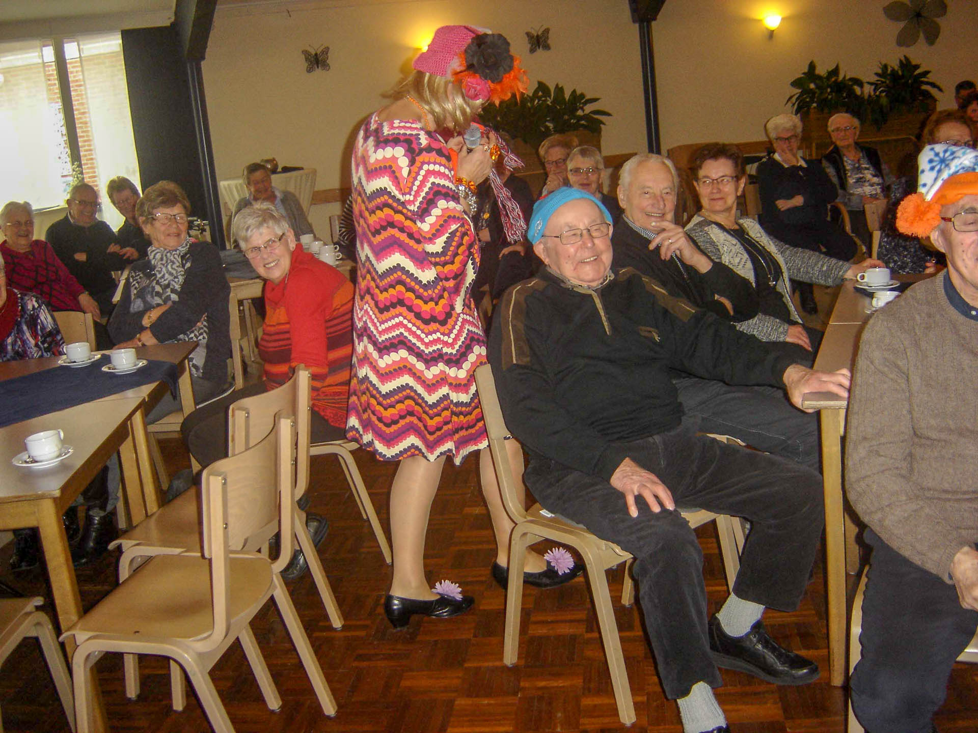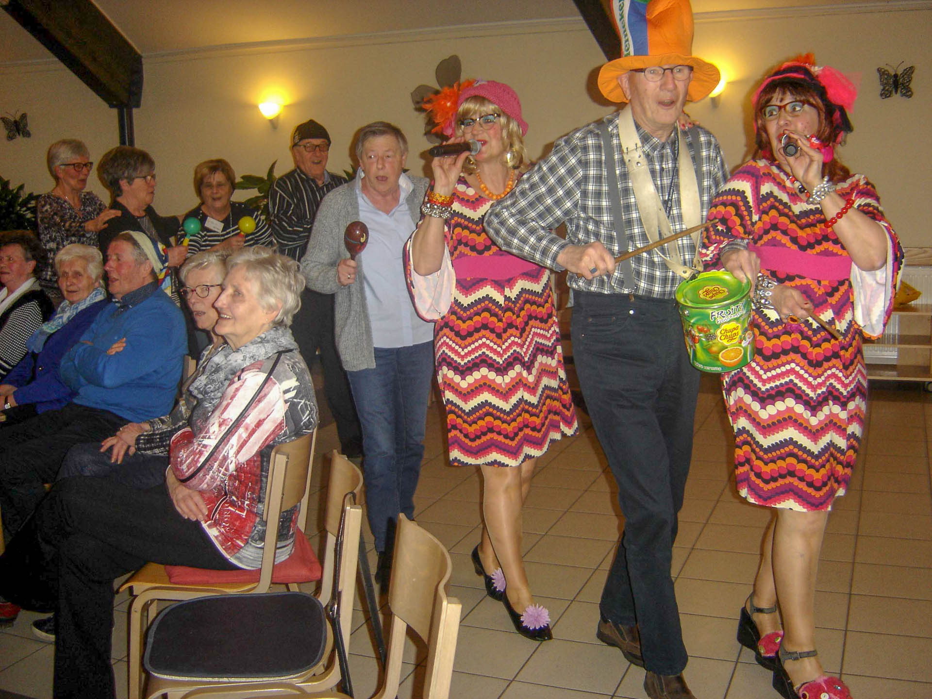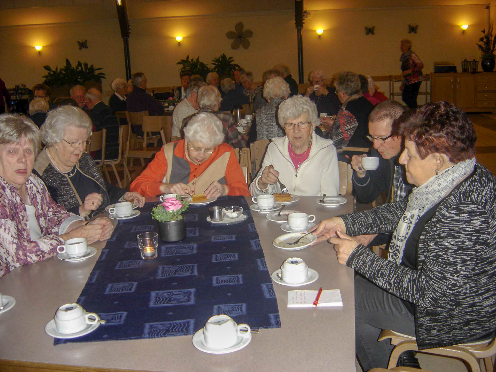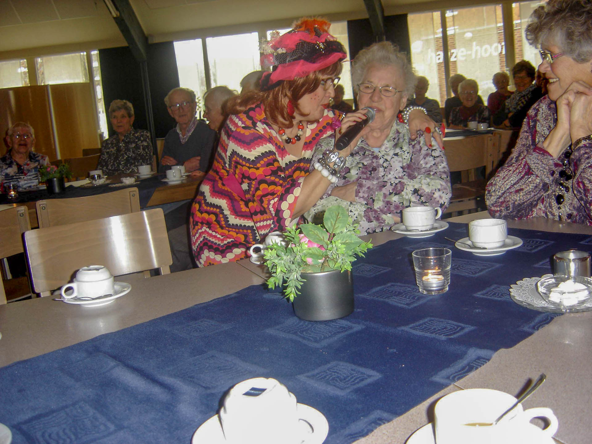 In de pauze voorzagen de vele vrijwilligers de gasten in een recordtempo van heerlijke Limburgse vlaai en een kopje koffie. Daarna zong het duo nog leuke liedjes waarbij de gasten met verschillende attributen werden ingeschakeld. Na nog een paar “We want more” kreten uit het publiek, zongen de dames tot slot nog een paar liedjes en werd om 16.00 uur de middag afgesloten door de voorzitter van de zonnebloem.
