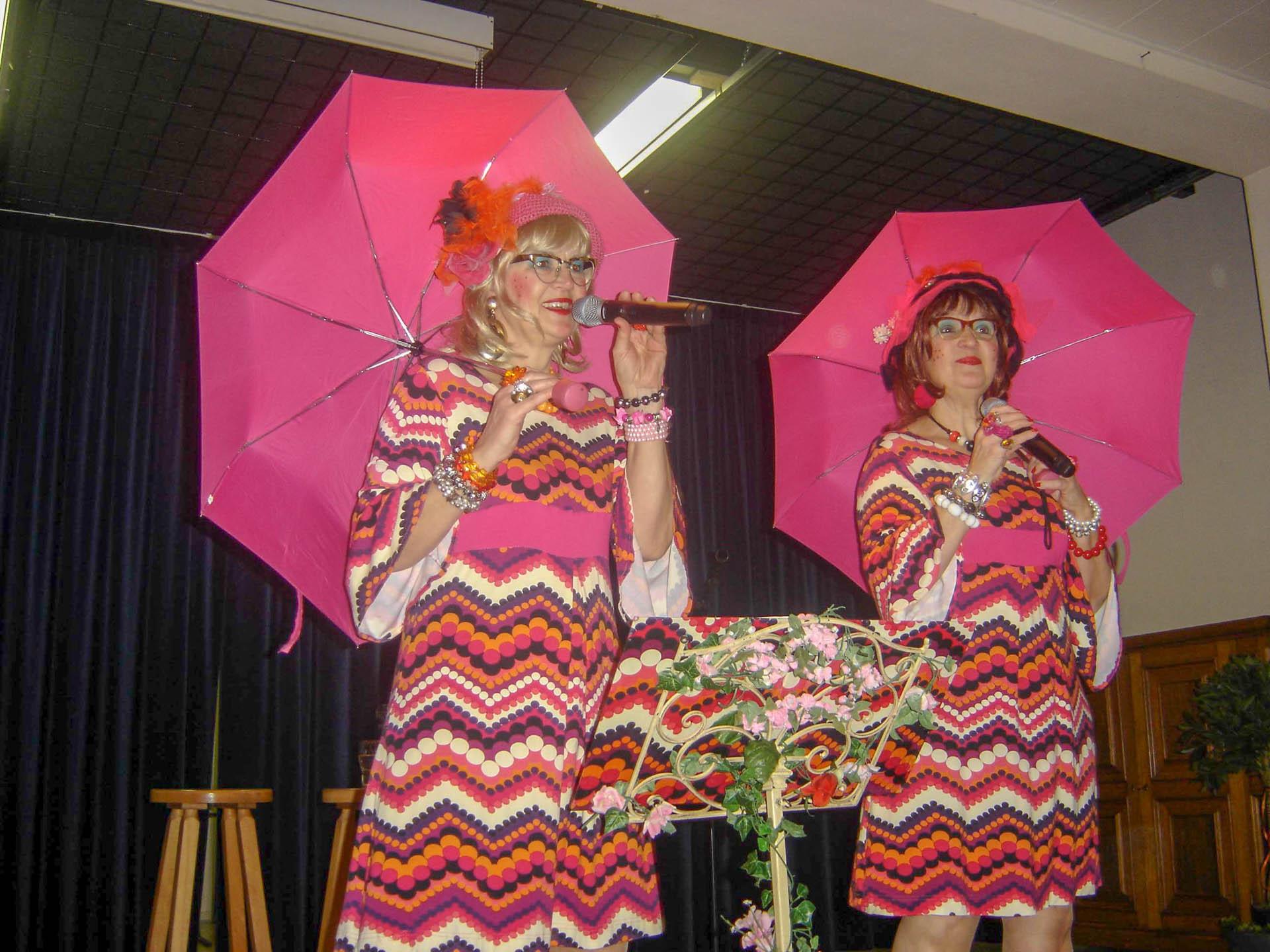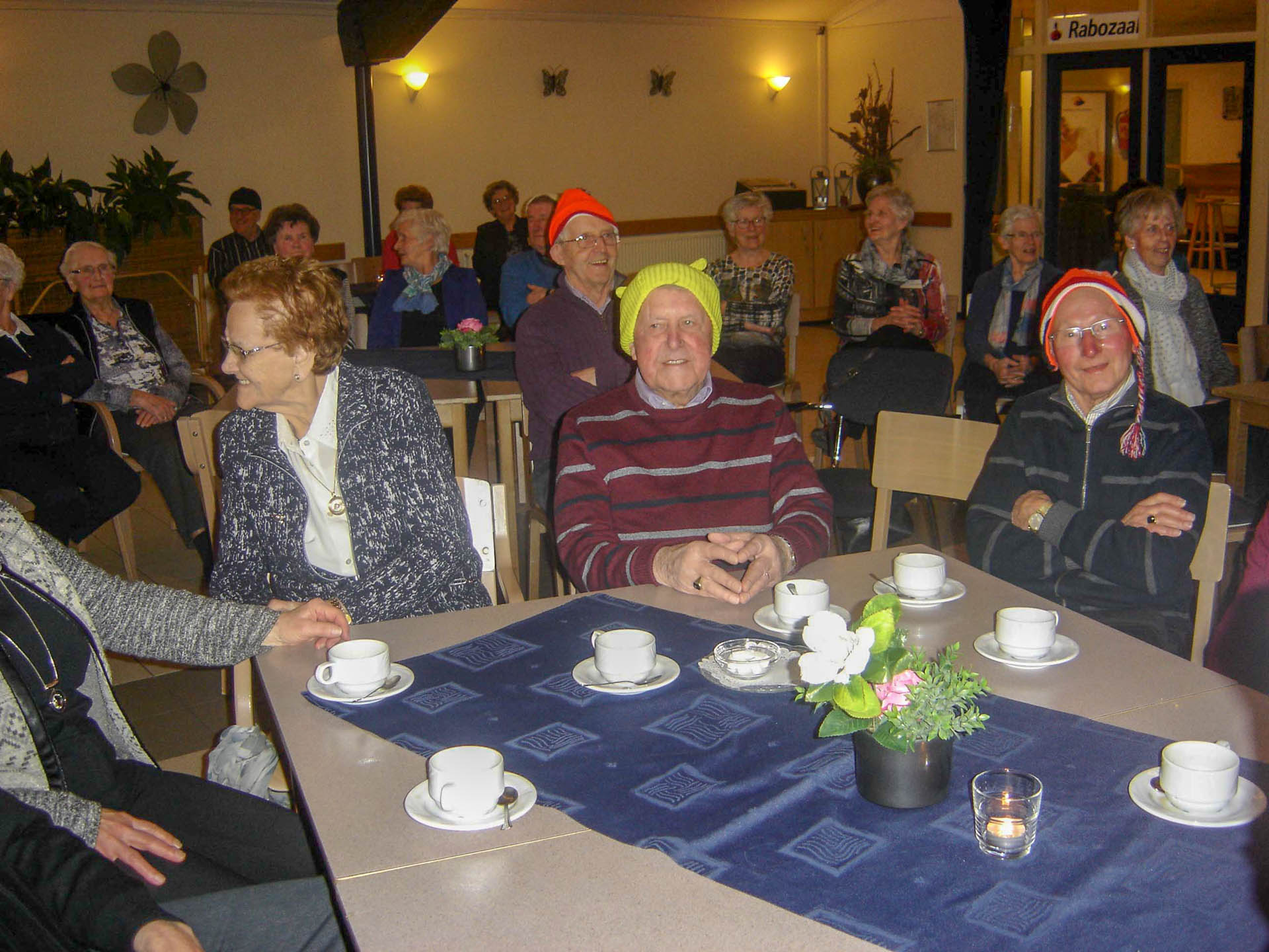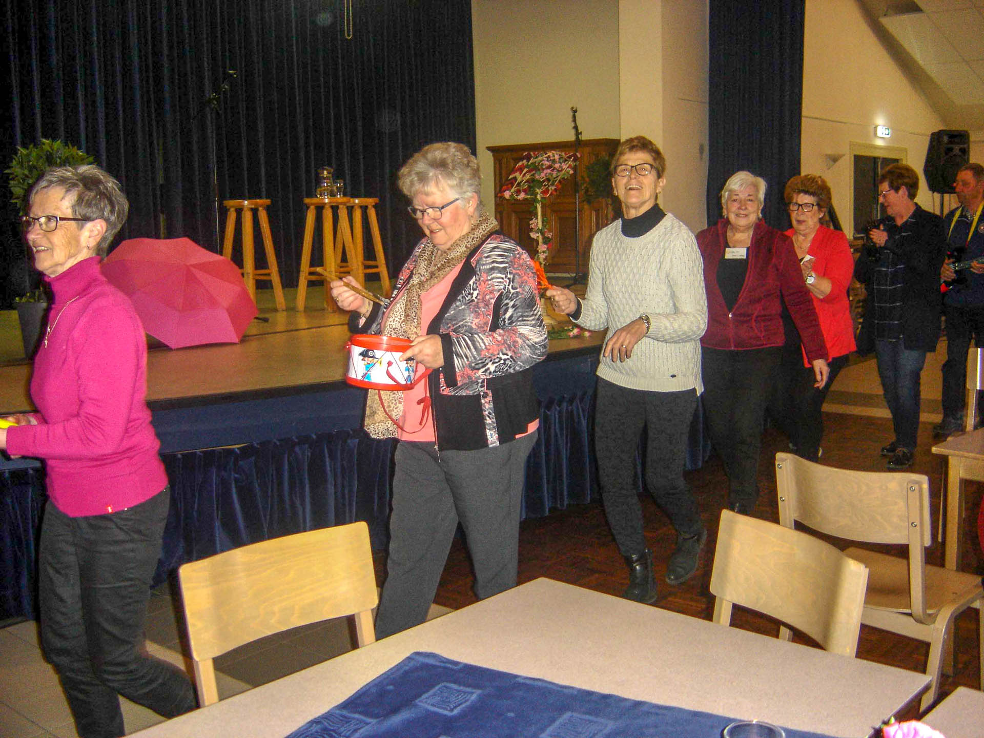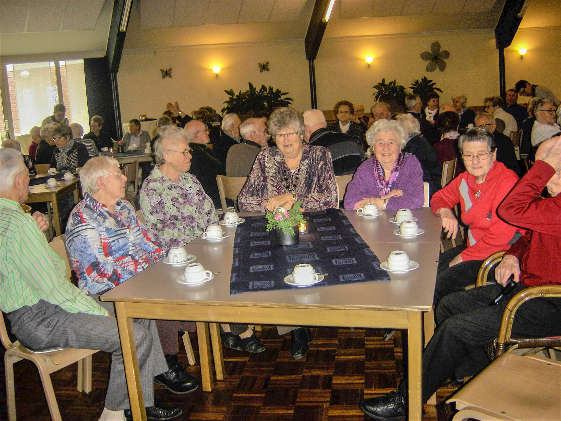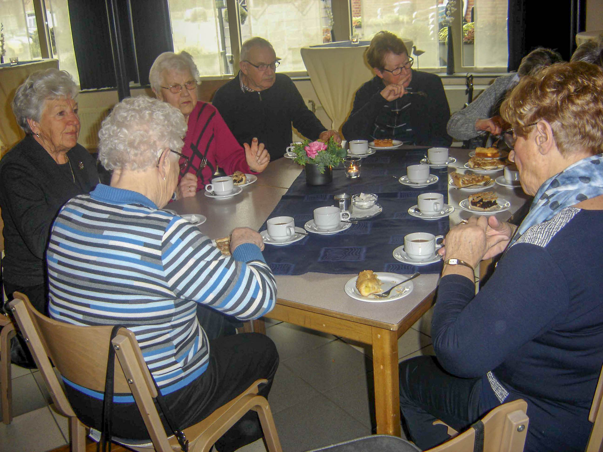 In de pauze voorzagen de vele vrijwilligers de gasten in een recordtempo van heerlijke Limburgse vlaai en een kopje koffie. Daarna zong het duo nog leuke liedjes waarbij de gasten met verschillende attributen werden ingeschakeld. Na nog een paar “We want more” kreten uit het publiek, zongen de dames tot slot nog een paar liedjes en werd om 16.00 uur de middag afgesloten door de voorzitter van de zonnebloem.