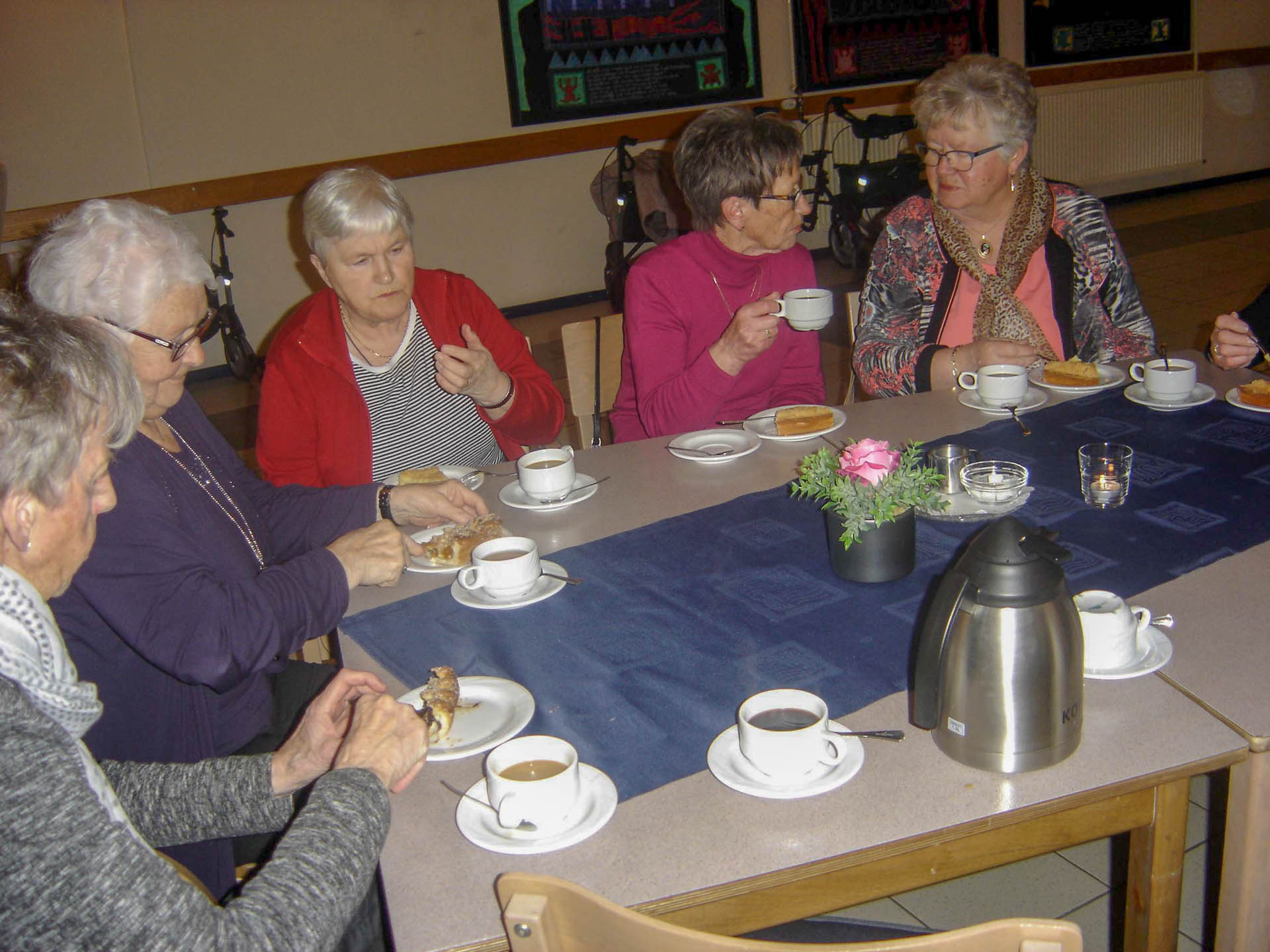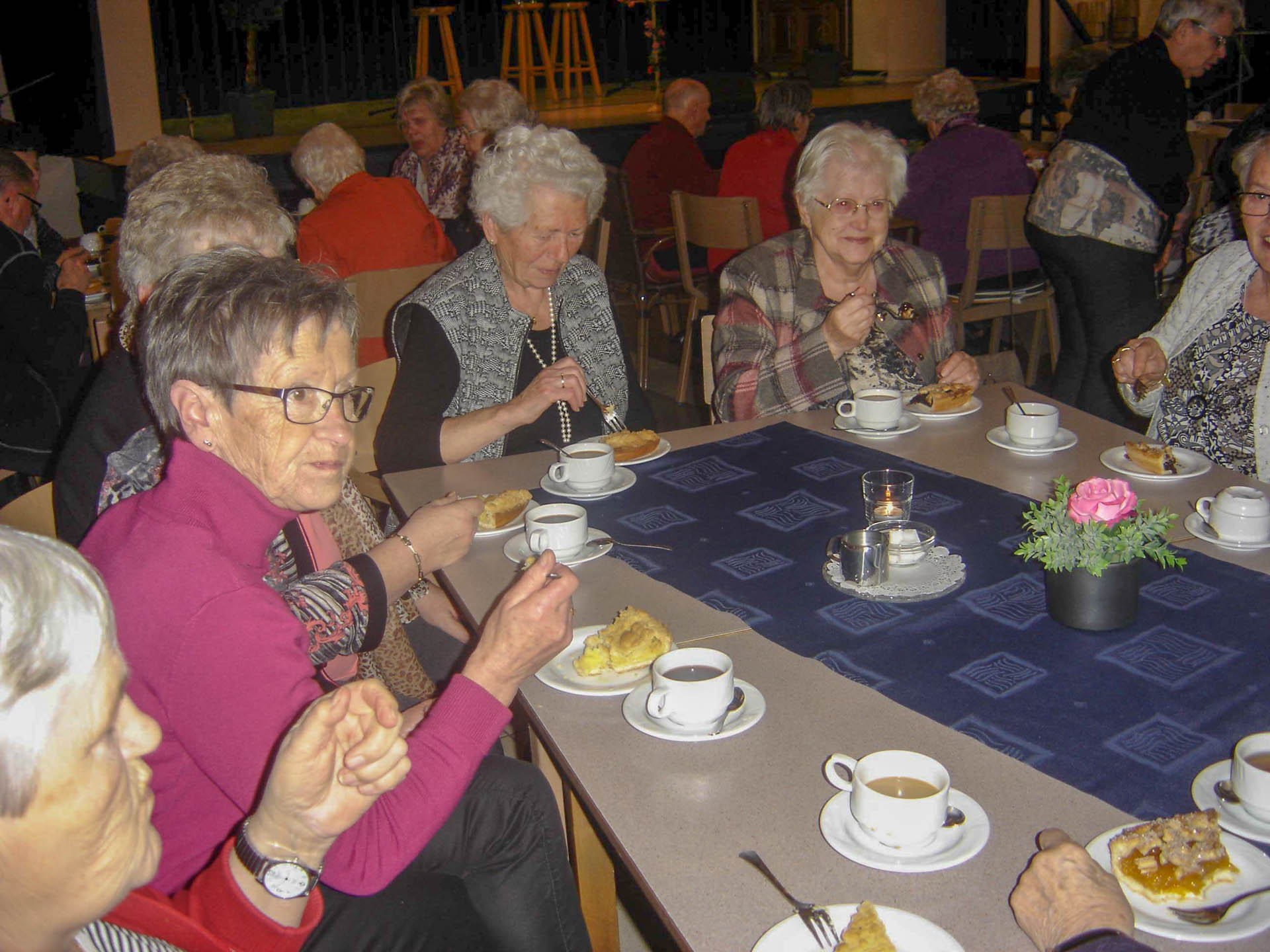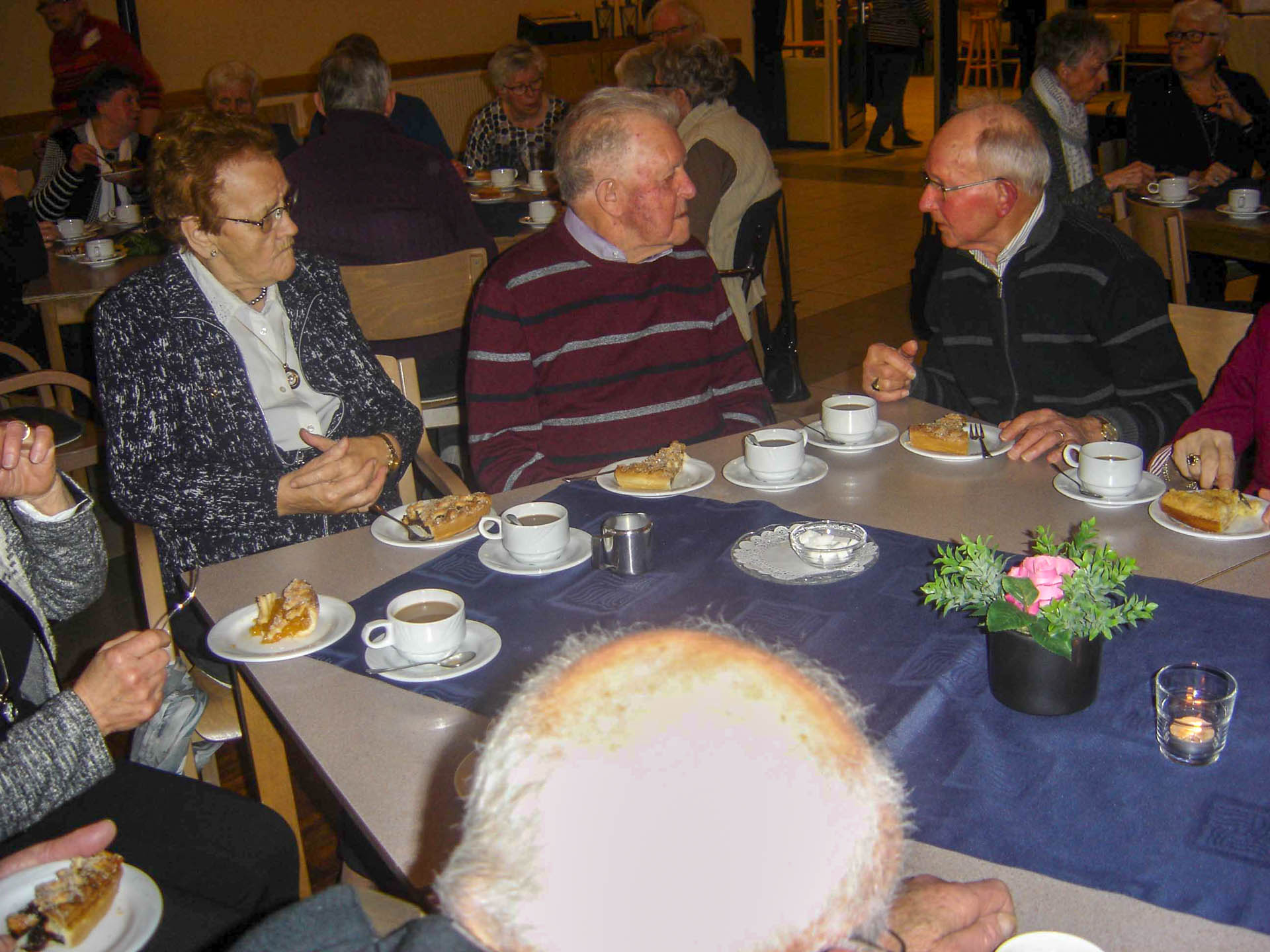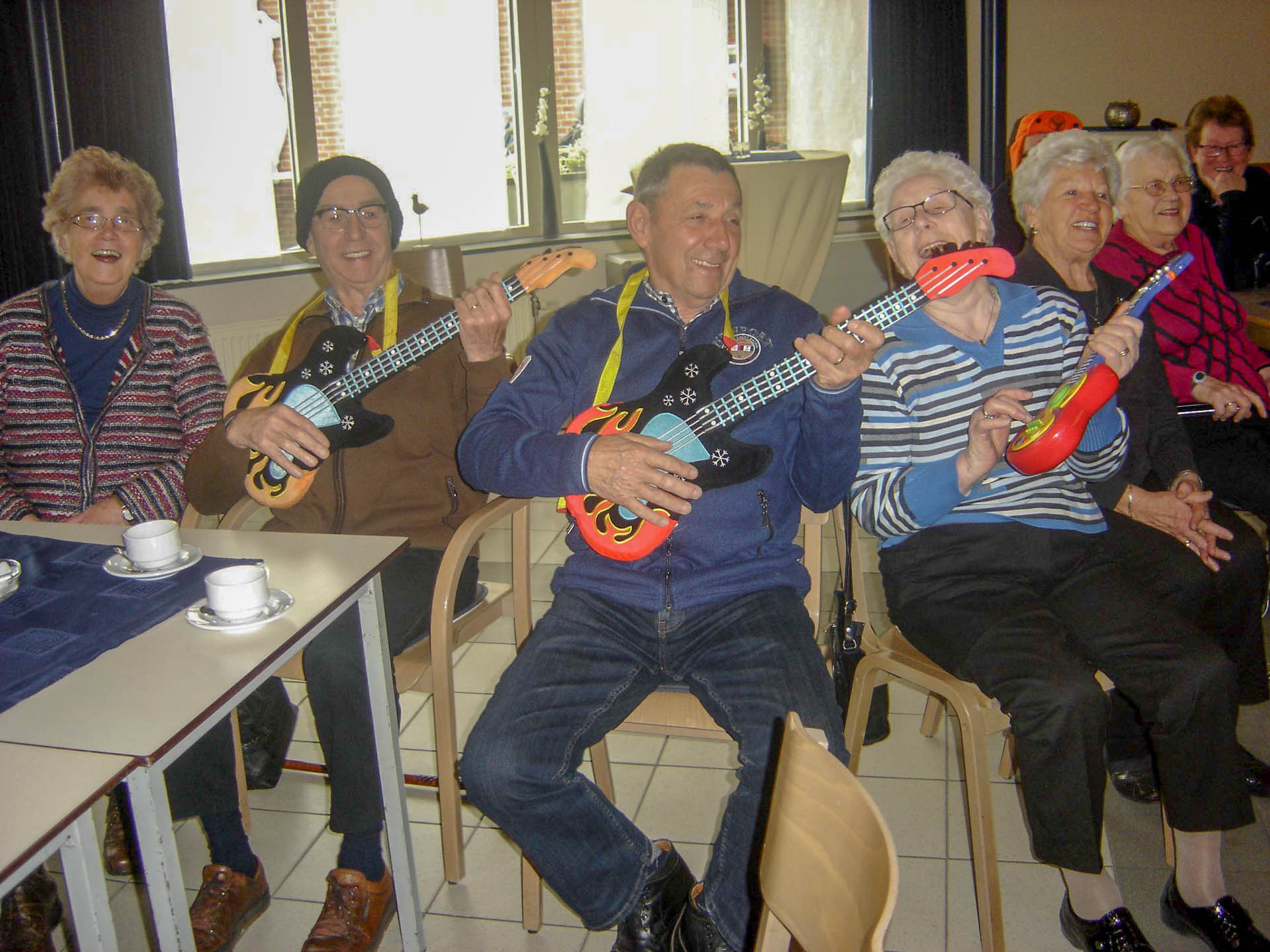 In de pauze voorzagen de vele vrijwilligers de gasten in een recordtempo van heerlijke Limburgse vlaai en een kopje koffie. Daarna zong het duo nog leuke liedjes waarbij de gasten met verschillende attributen werden ingeschakeld. Na nog een paar “We want more” kreten uit het publiek, zongen de dames tot slot nog een paar liedjes en werd om 16.00 uur de middag afgesloten door de voorzitter van de zonnebloem.