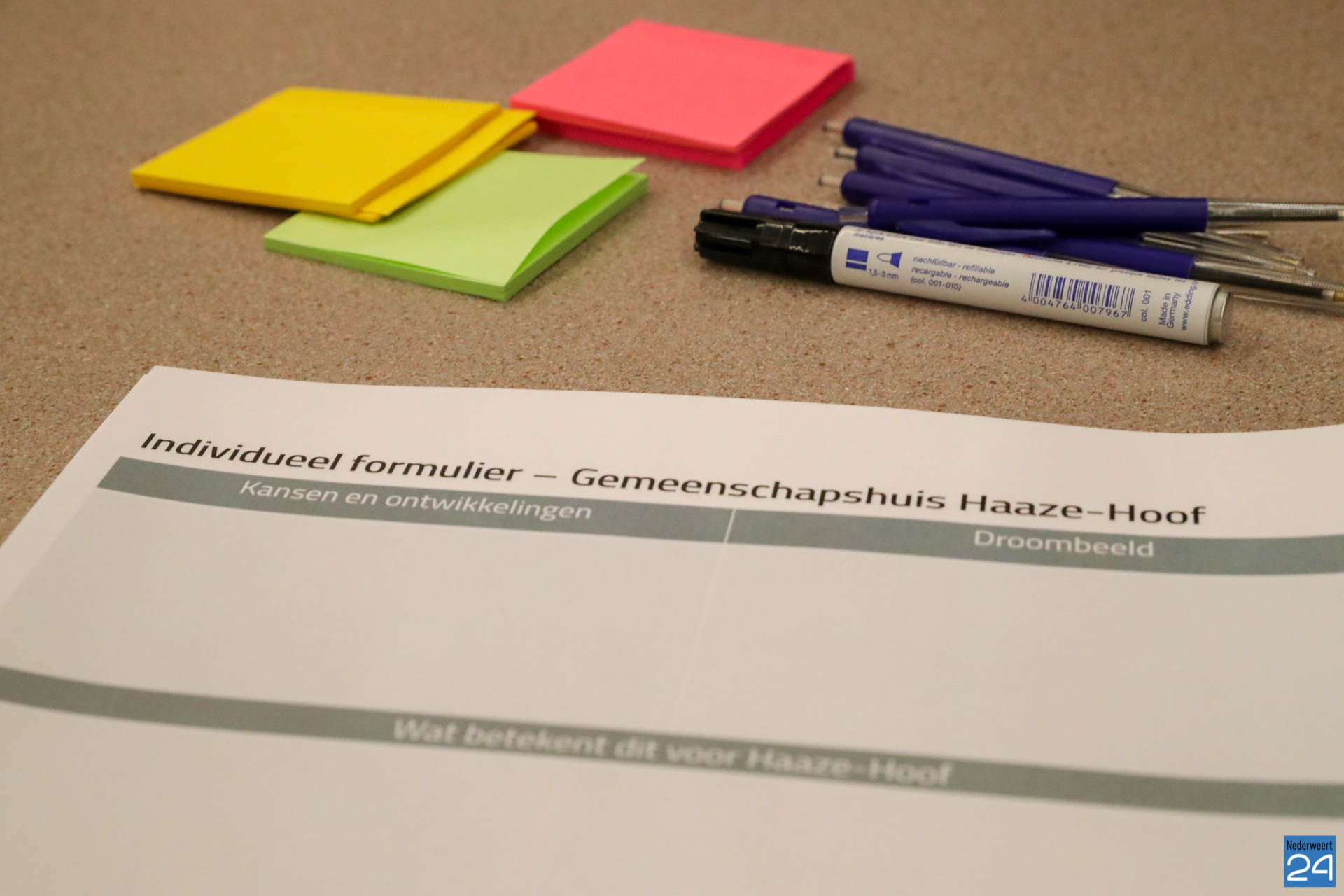 In het tweede gedeelte van de bijeenkomst zijn de bezoekers door gesprekleider Daniëlle Remy uitgedaagd om daadwerkelijk mee te gaan denken. Allereerst was er aandacht voor de zwakke en sterke kanten van Haaze-Hoof. De tweede ronde is gebruikt om ideeën op te halen hoe Haaze-Hoof toekomstbestendig kan worden gemaakt.  Dat heeft geleid tot veel ideeën die verder uitgewerkt zullen worden. De bereidheid om concreet mee te gaan werken vanuit de aanwezigen was bemoedigend.