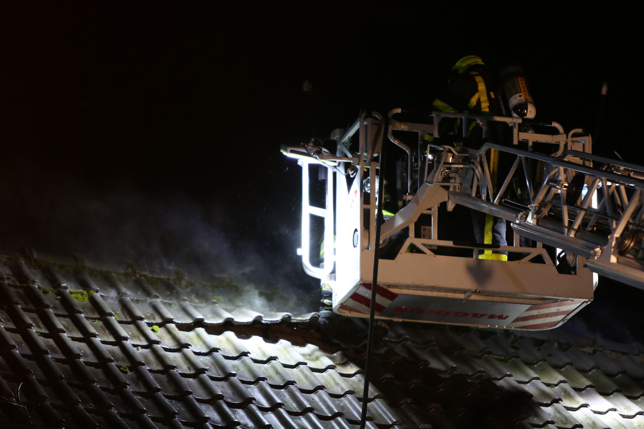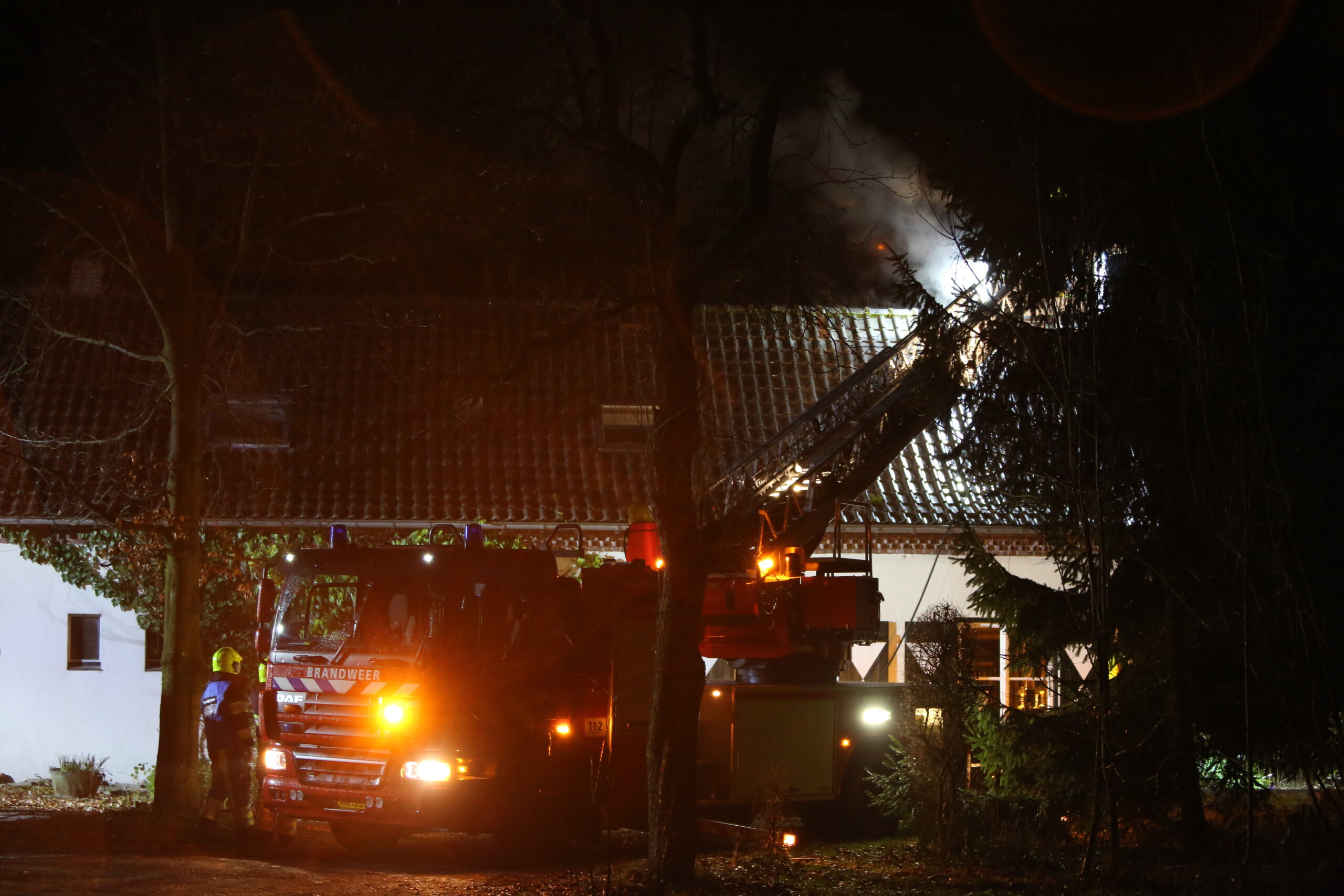 De bewoner hoorde buiten iets knetteren. Toen hij vonken zag, aarzelde hij geen moment en schakelde hij de hulpdiensten in. De brandweer heeft enkele pannen van het dak moeten halen om het vuur te doven. De schade is behoorlijk.