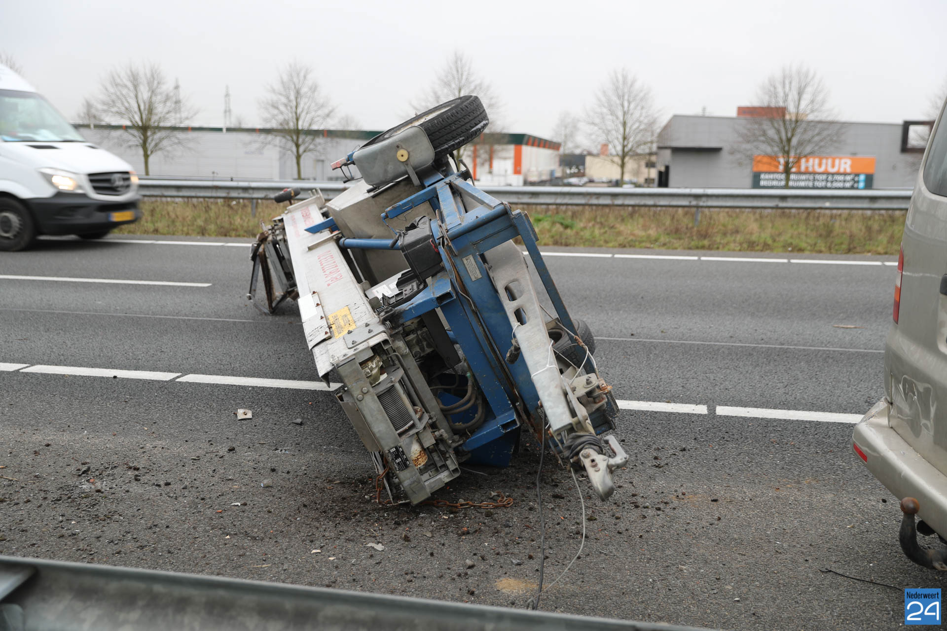 Donderdagmiddag is er een ‘pannenlift’ gekanteld op de A2 net voorbij afslag Nederweert in Noordelijke richting. De lift versperde één rijstrook waardoor er een flinke file ontstond van afslag Kelpen-Oler tot afslag Nederweert.
