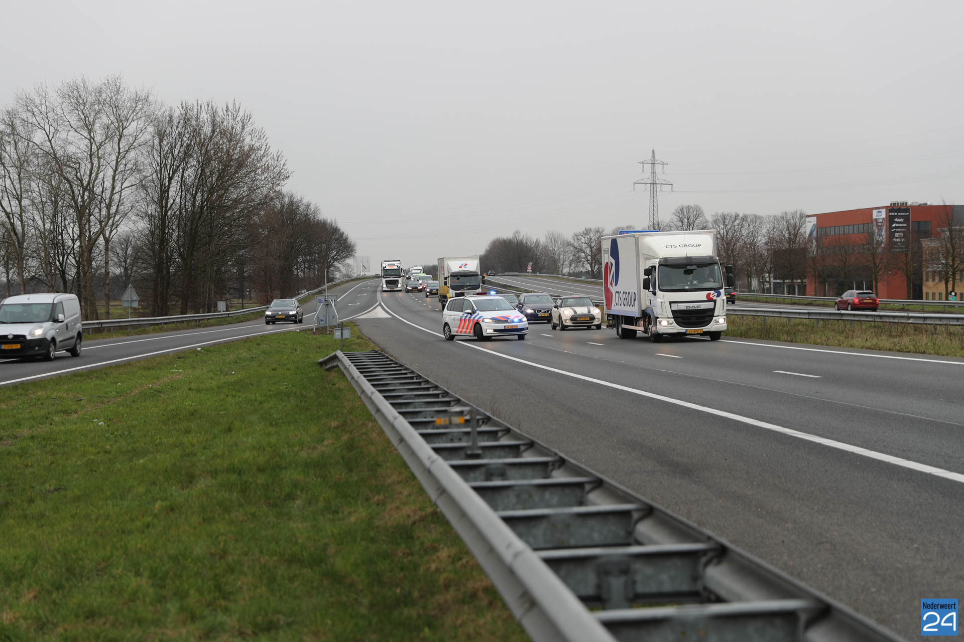 Door het ongeval was er lange tijd maar één rijstrook beschikbaar waardoor er een flinke file ontstond.