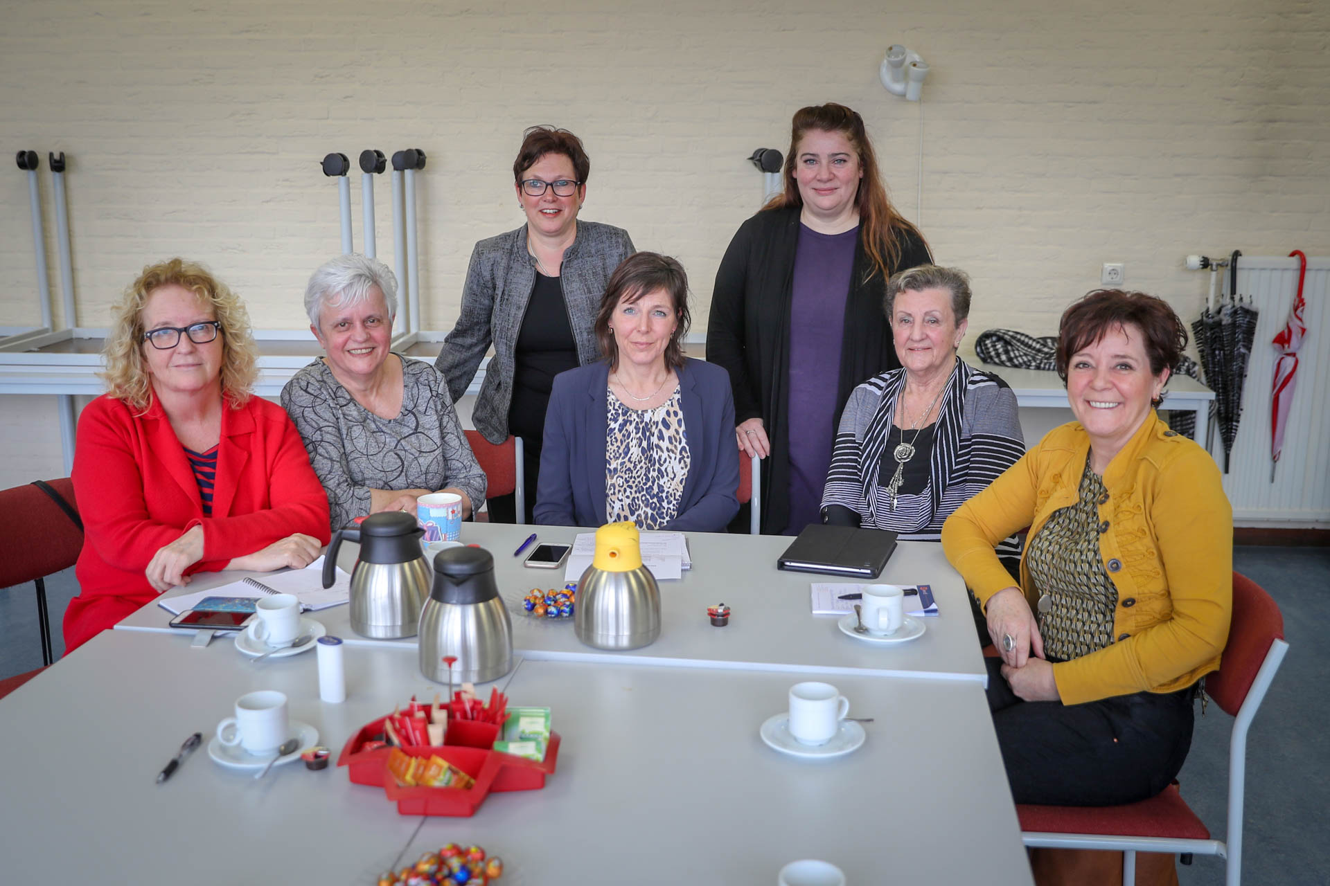 Foto: van links naar rechts zittend: Ellen ten Haken (RICK) Tineke Verstappen (Mantelzorger), Sandra Hermans (Mantelzorgconsulent) Will Vlug (Mantelzorger) Gerrie Kessels (PSW) | Staand: Hennie Scheijven (Mantelzorger) en Carin Jacobs (AMW)