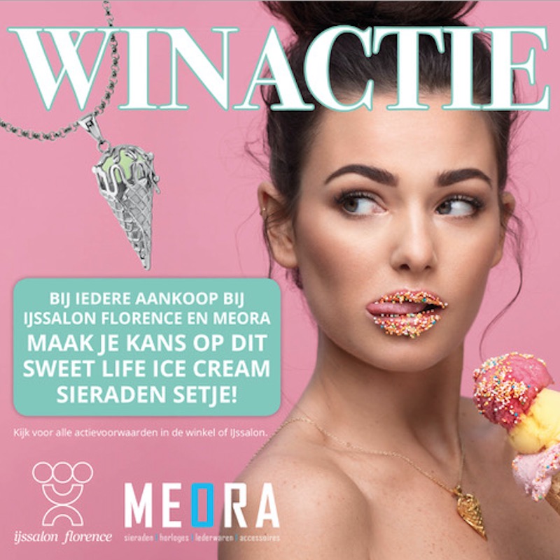 Wil jij graag een Sweet Life Ice Cream hangertje winnen dan moet je bij Meora Trendstore of IJssalon Florence in Nederweert zijn. Iedereen die een aankoop doet krijgt een ‘flyer‘. Als je deze invult en inlevert maak je 10x kans op zo’n prachtig hangertje. Hou ook de Facebookpagina’s van Meora Trendstore of IJssalon Florence in de gaten want daar worden er ook nog 2 verloot.
