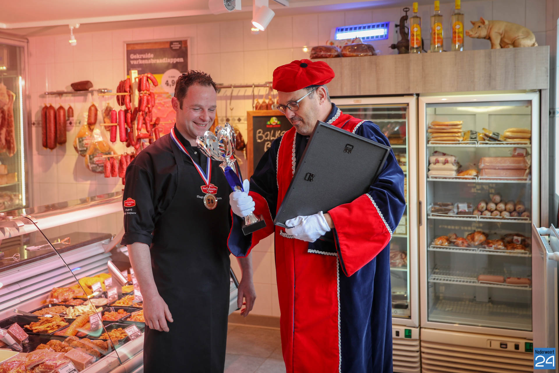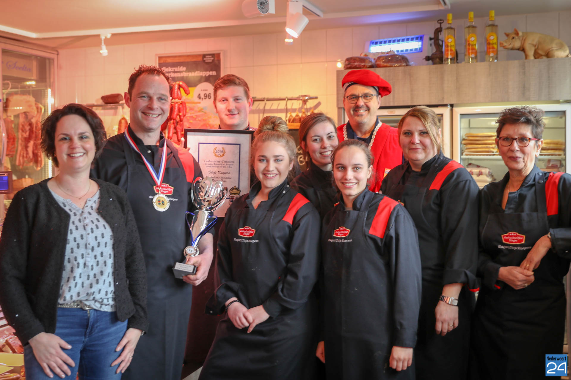 Slagerij Thijs Kuepers uit Nederweert Eind is Nationaal Kampioen Rauwe Vleeswaren: ontbijtspek, plaatham, coburgerham, coppa, wildzwijnham. Zaterdagmorgen werd de prijs hoogst persoonlijk overhandigd door Confrérie des Chevaliers. Dit gebeurde in de winkel aan Eind 12 in Nederweert-Eind.