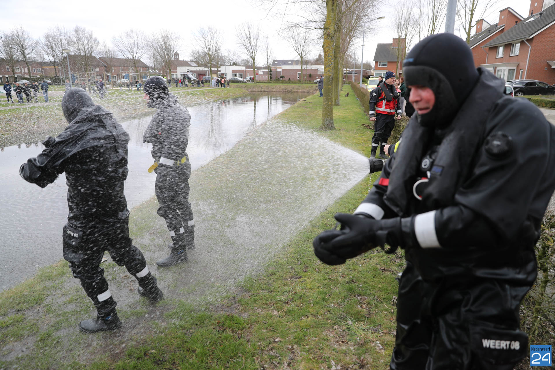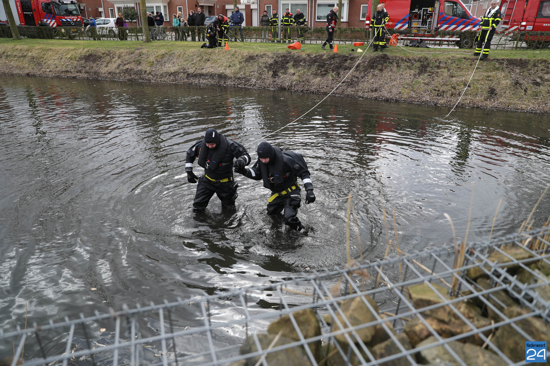 Daarop werden de brandweer, ambulance, politie en een traumahelikopter gealarmeerd. Het duikteam van de brandweer heeft uitgebreid gezocht in het ‘ondiepe‘ water maar niks aangetroffen. Na een half uur werd de zoektocht gestaakt.