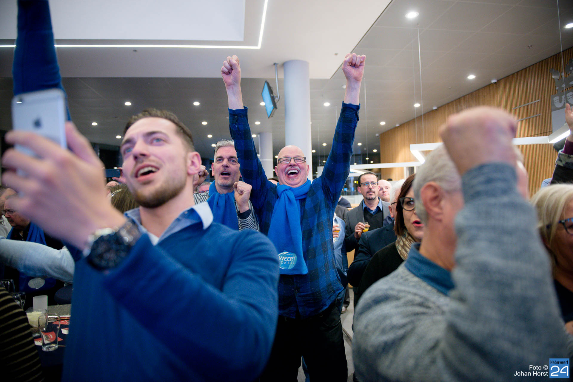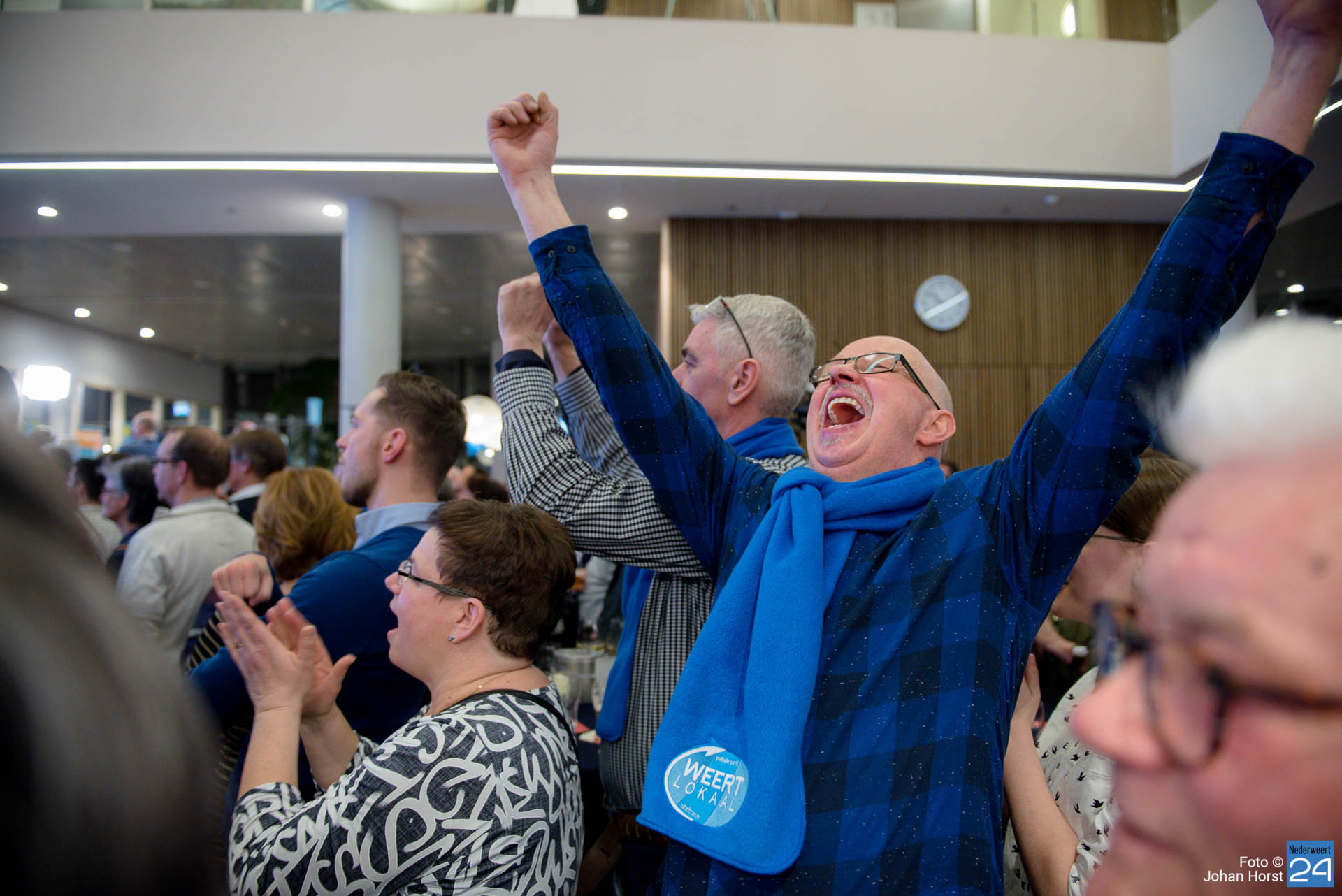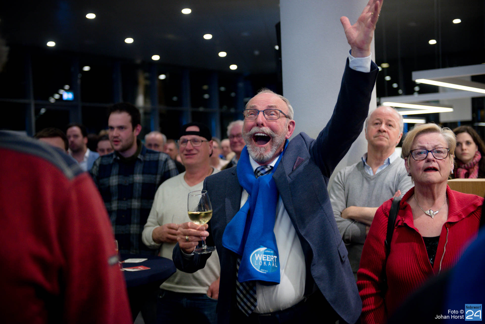 Lokaal Weert is de grote winnaar van de Weerter verkiezingen. Ze mogen met 12 zetels in de raad. De blijdschap werd gevierd in de volle hal van het stadhuis.